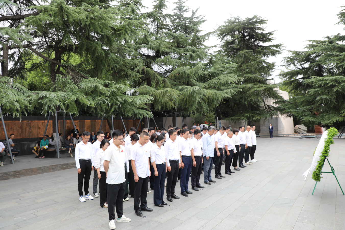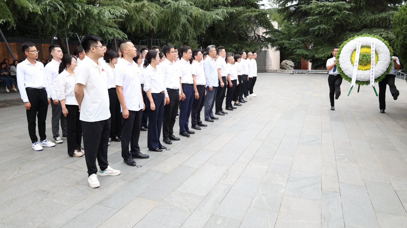 在庄严肃穆的纪念馆悼念广场,全体党员干部整齐列队,向南京大屠杀遇难者敬献花圈,肃立默哀,深切悼念遇难同胞,缅怀为抗战胜利献出生命的革命先烈和民族英雄。