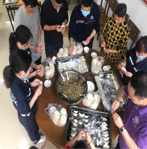 饺子可谓中国人最喜欢的传统食品,胖乎乎的饺子不仅让人食指大动,更能儿时唤起温暖的回忆,项目部准备了素馅和肉馅以及饺子皮,等待着厨神们大显身手。上午十点,期待许久的厨神大赛正式拉开帷幕。随着一声令下,参赛小组立即投入到比赛之中,这一场可谓精彩绝伦,队员们包饺子的手法不仅分南北两派,甚至不同省市的队员都不一同,比赛仿佛变成了一场包饺子交流会,队员们各显神通,力求以最快的速度包出最漂亮的饺子。没过一会儿,一盘盘大小均匀、形状美观的饺子便做好了。项目部午餐时,各组所有的“作品”都被端上餐桌,免费供项目职工食用,获得好评如潮。