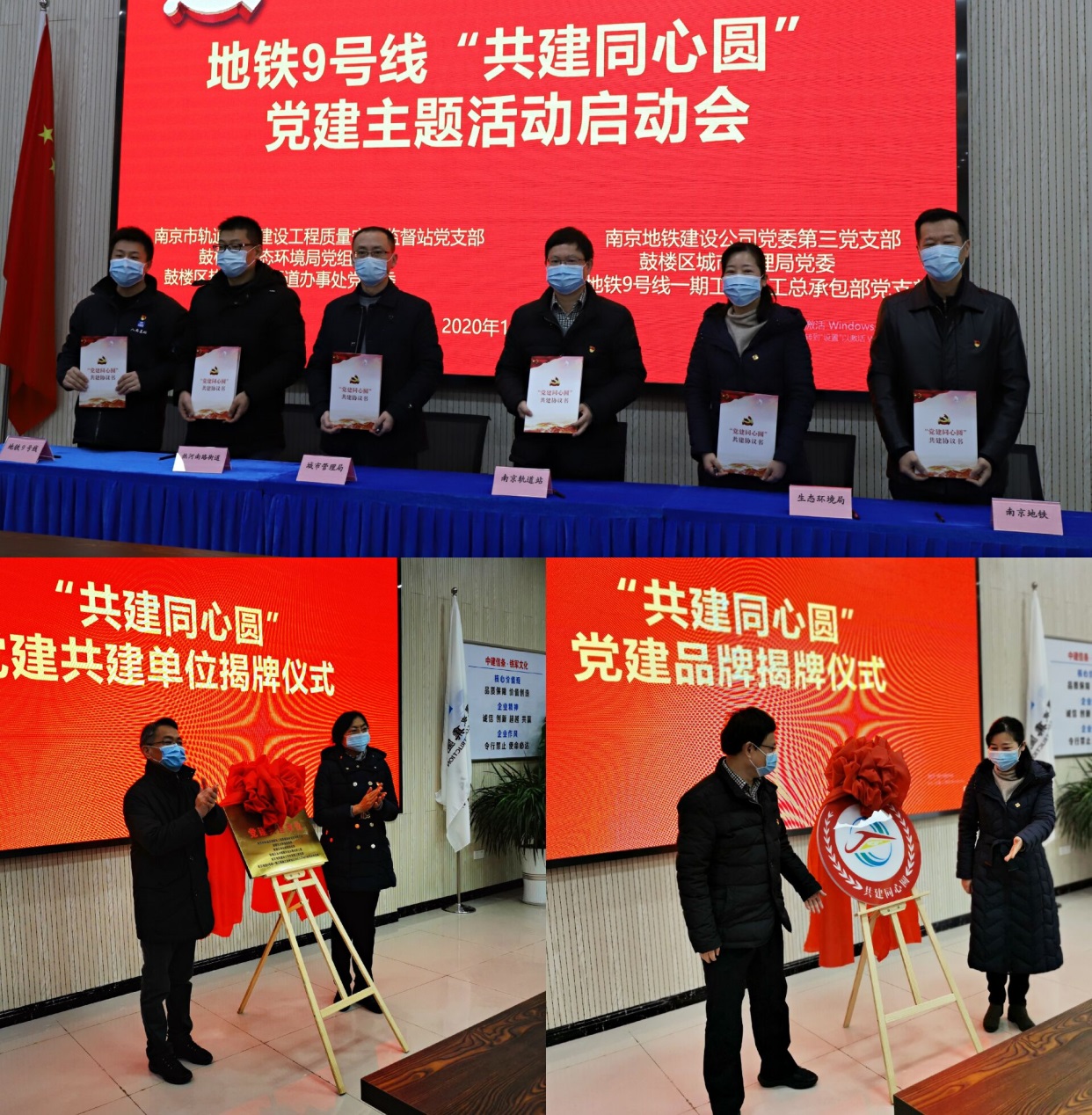 会上,中建八局三公司党委副书记马清杰致辞,市建委一级调研员赵宜和南京地铁总工程师黎庆为“共建同心圆”党建共建单位揭牌,鼓楼区生态环境局党组书记巢璐与市轨道站站长蓝桂华为“共建同心圆”党建品牌logo揭牌,6家共建单位签订共建协议并表态发言,赵宜主任进行了总结讲话。