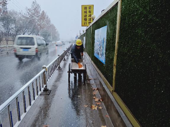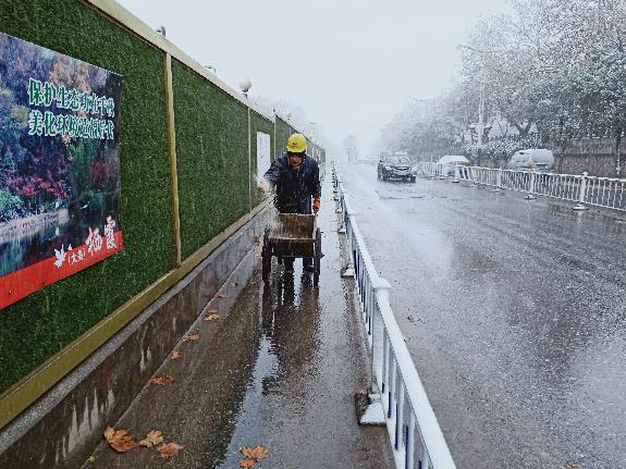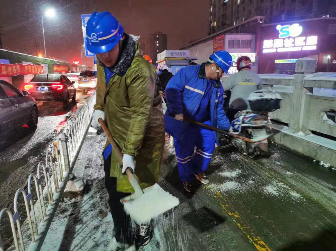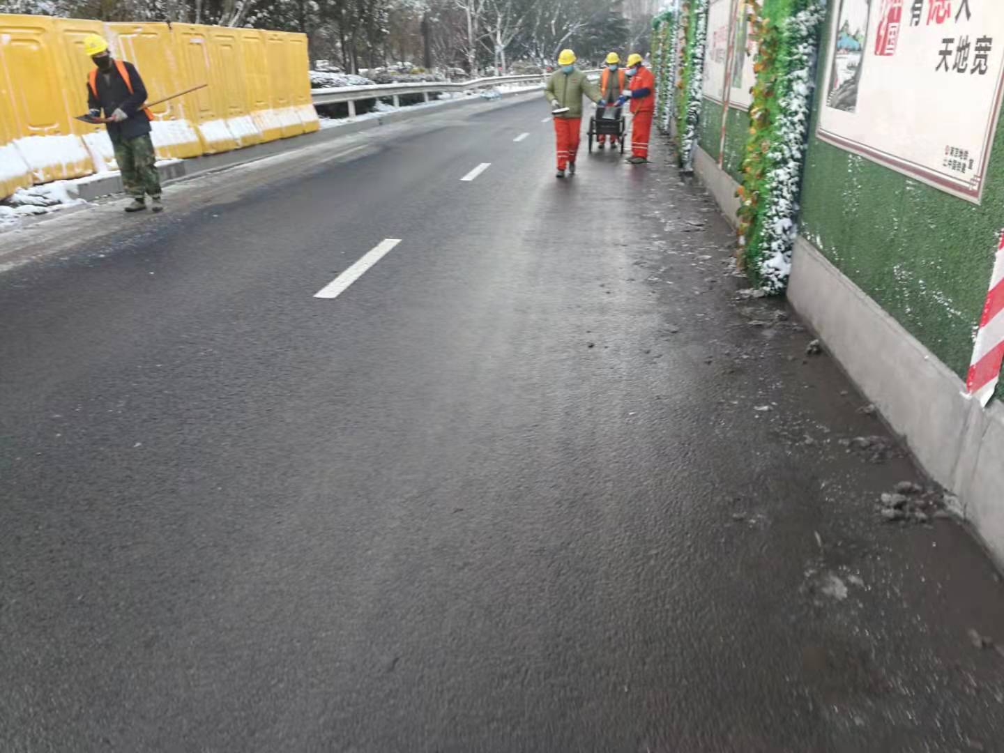 成立青年突击队,奋战在低温冰雪天气最前线,哪里有积雪,哪里就有他们的身影。出动工程机械20余台、扫地车8台、工业用盐400公斤、融雪剂1000公斤,铁锹、扫把不计其数,开展铲雪除冰工作。任风雪再大,始终保证道路畅通。