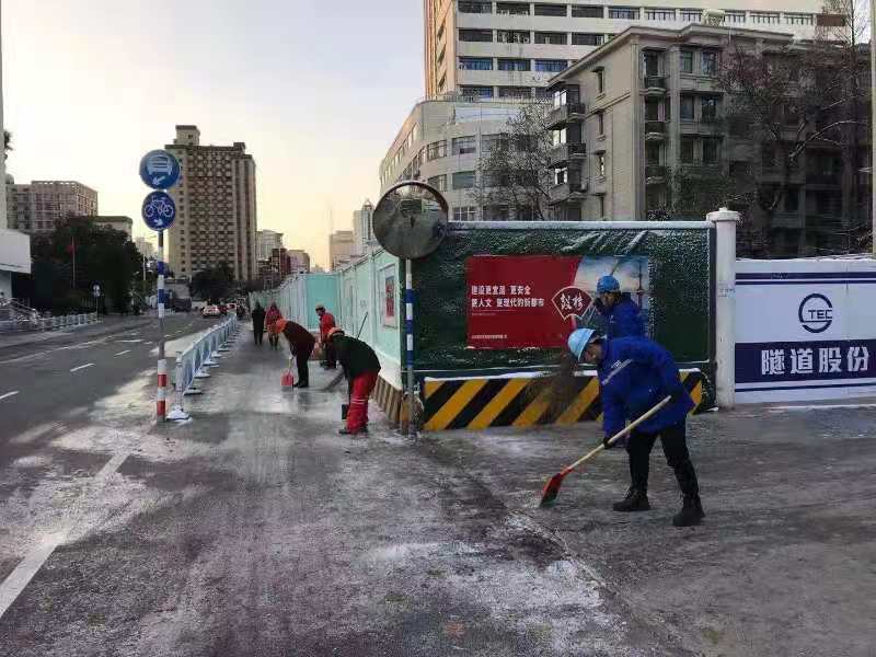 项目经理亲自上阵,带领项目部管理人员进行扫雪除冰,晚上扫雪,清晨除冰,创造了多条无雪、无冰道路。