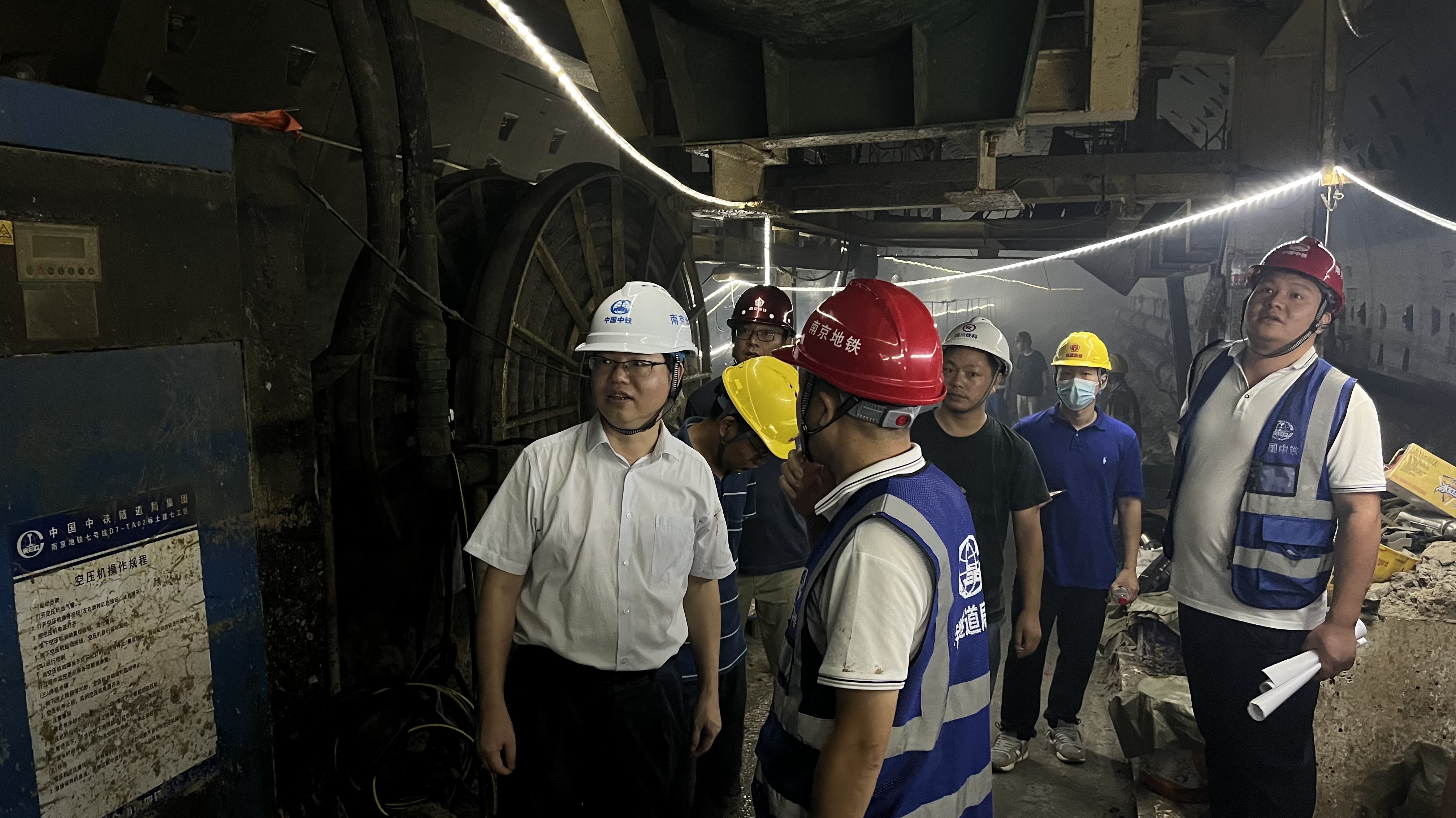 2023年8月23日上午,市轨道站蓝桂华站长带队到南京地铁七号线南湖路站~莫愁湖站区间修复工程施工现场,对工程质量安全情况进行了检查。副站长居浩、监督三科陪同检查。