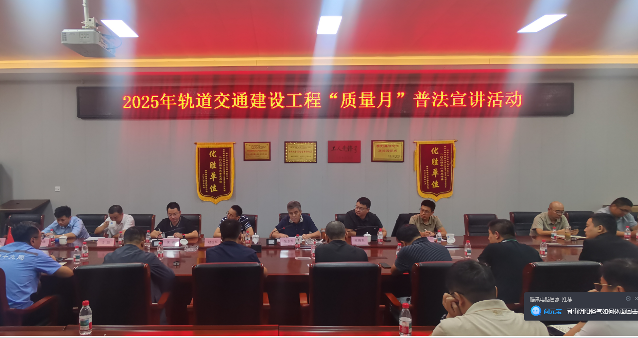 为切实增强我市轨道交通建设工程领域全员法治意识,有效推动现场施工质量管理水平不断提升,9月26日上午,市轨道站结合“质量月”活动安排,围绕“加强全面质量管理 促进质量强国建设”活动主题,组织开展2025年轨道交通建设工程“质量月”普法宣讲活动。此次活动采取“线上+线下”的方式进行,主会场设在宁扬城际TA01标项目部会议室,各在建线路设置视频直播分会场。市轨道站吴永军副站长、王海东副站长出席本次活动,全市轨道交通各在建线路各参建单位主要管理人员参会。