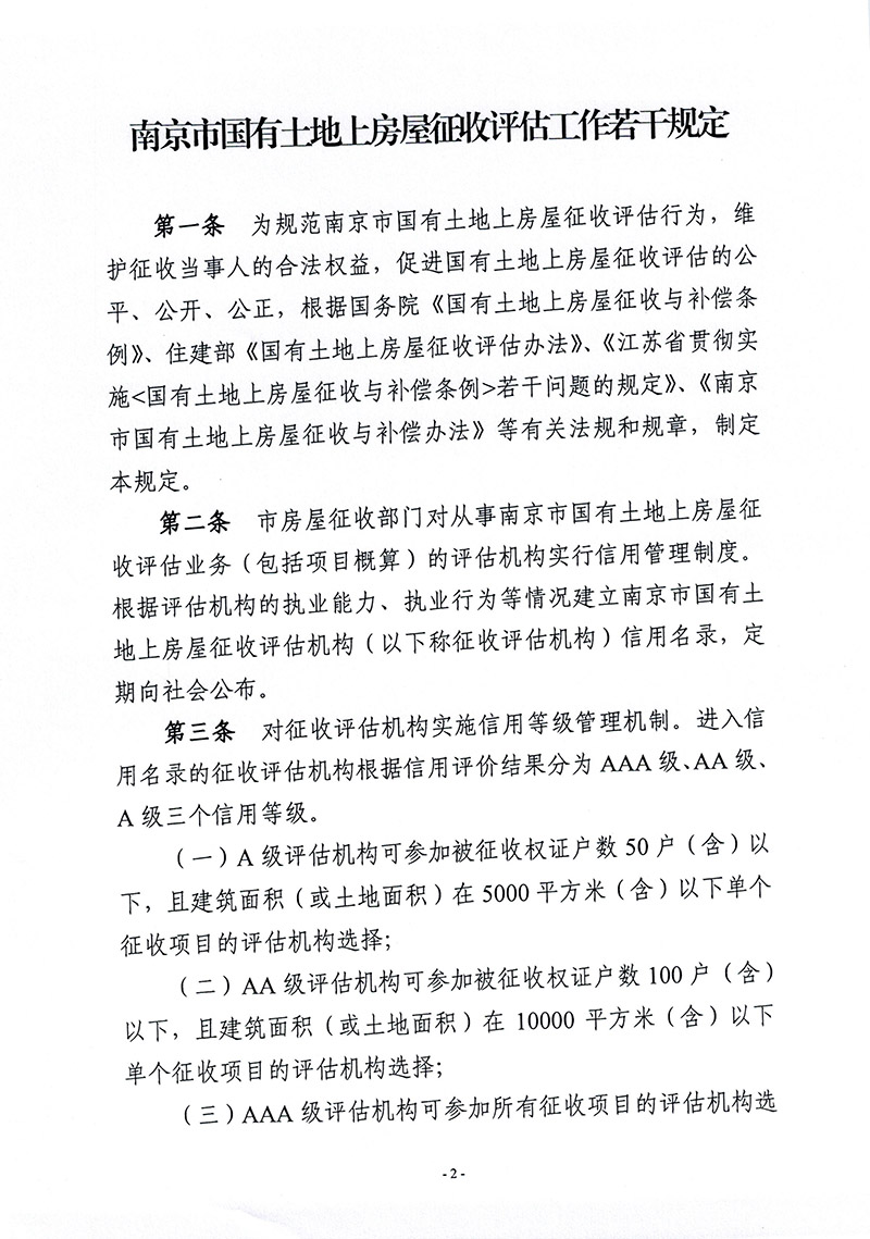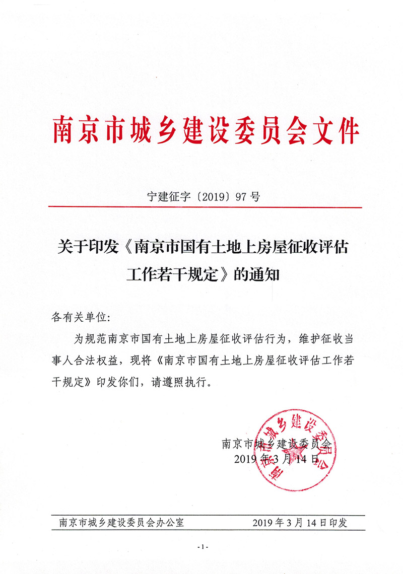 关于印发《南京市国有土地上房屋征收评估工作若干规定》的通知