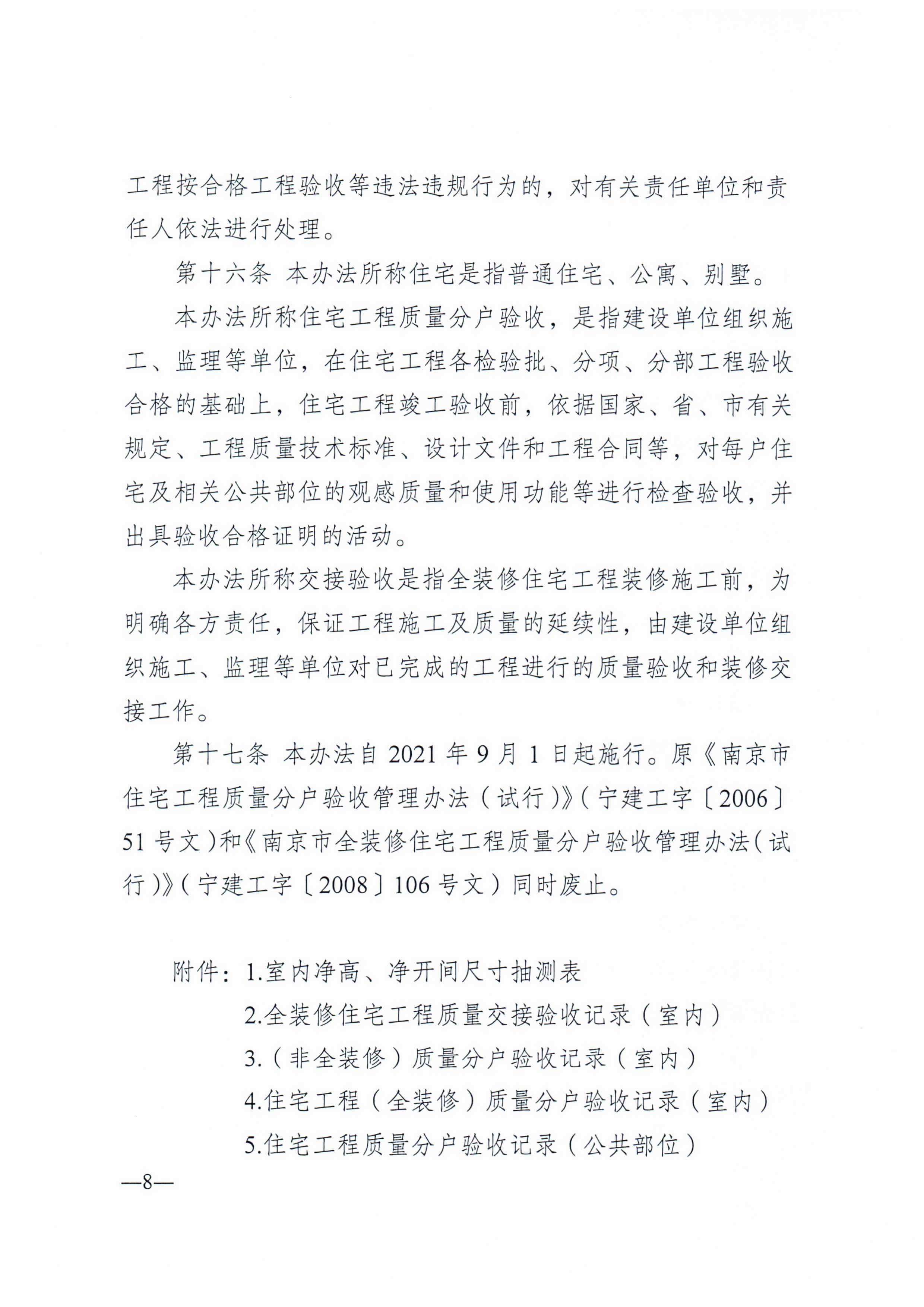 | 信息名称: | 南京市住宅工程质量分户验收管理办法 | ||