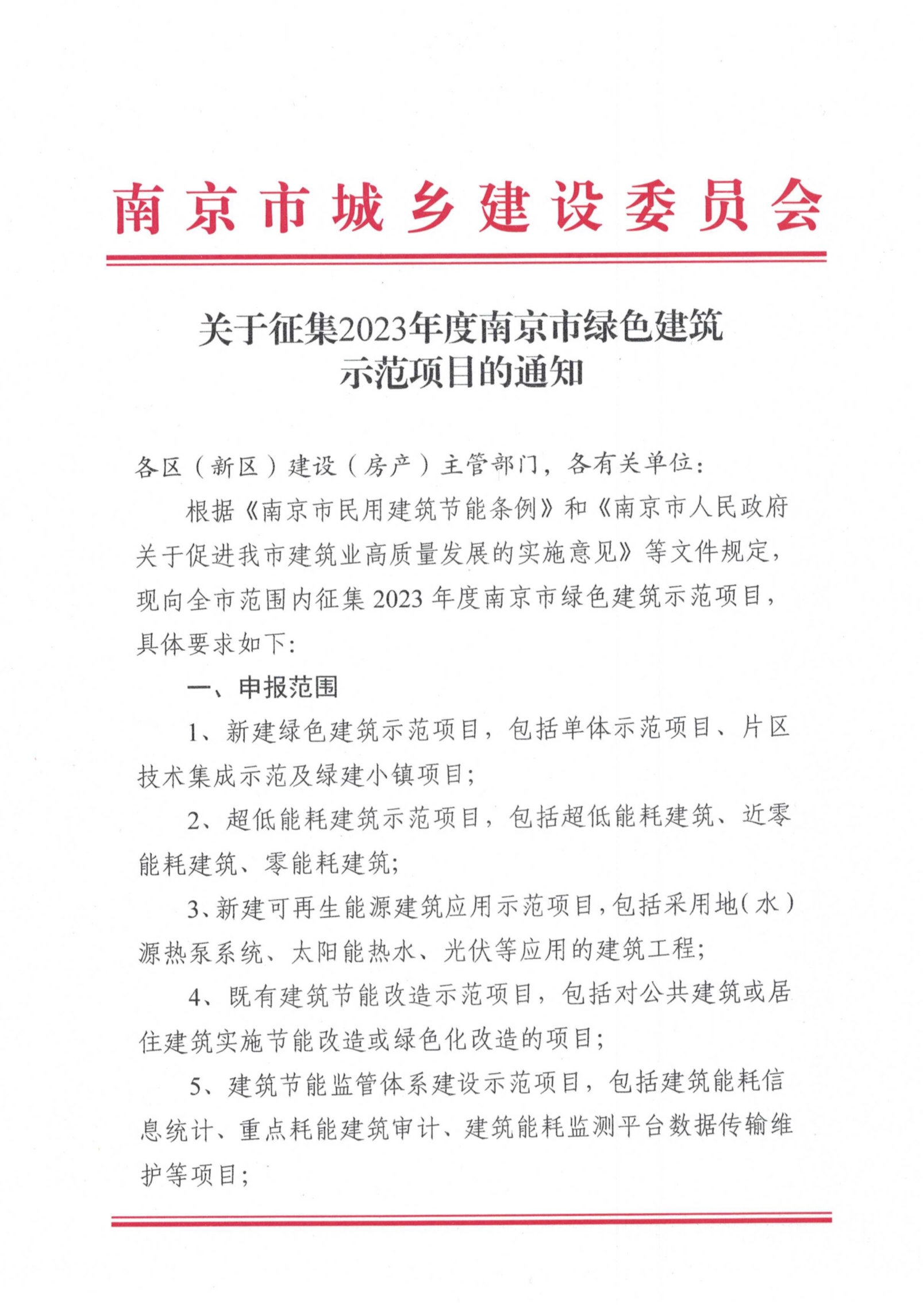关于征集2023年度南京市绿色建筑示范项目的通知