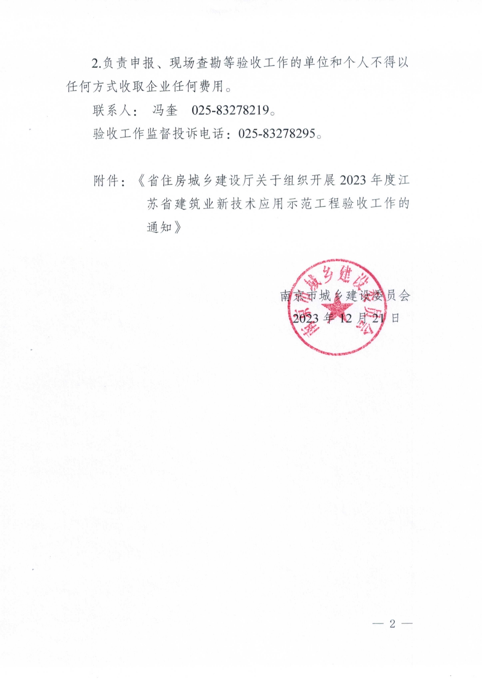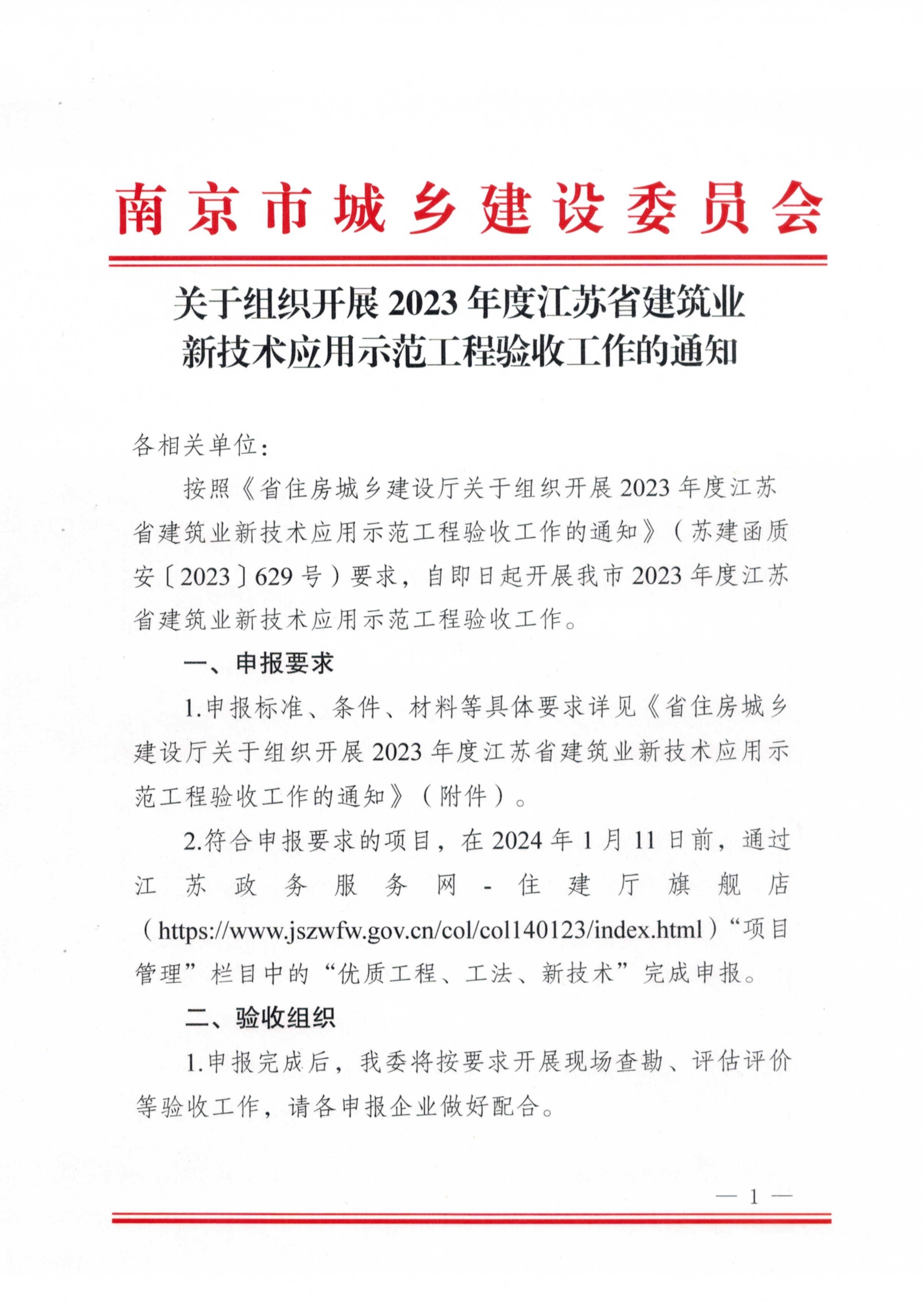 关于组织开展2023年度江苏省建筑业新技术应用示范工程验收工作的通知