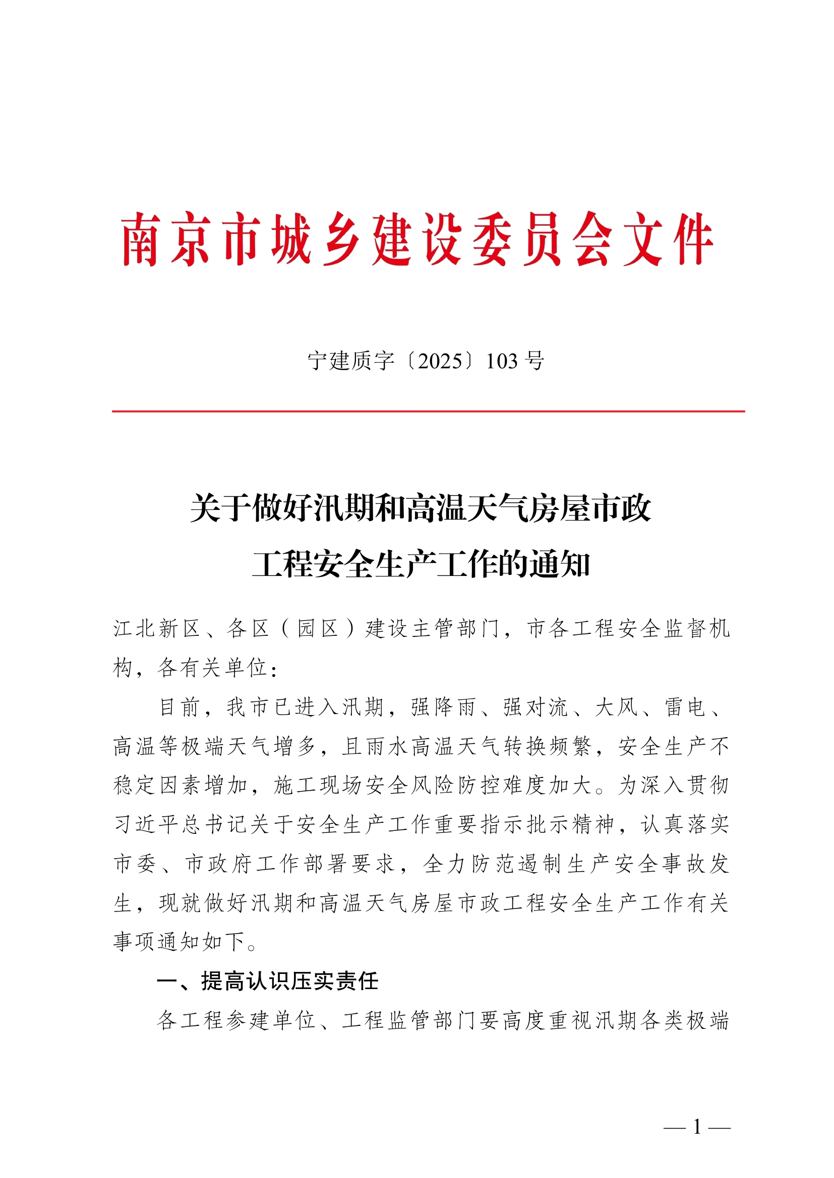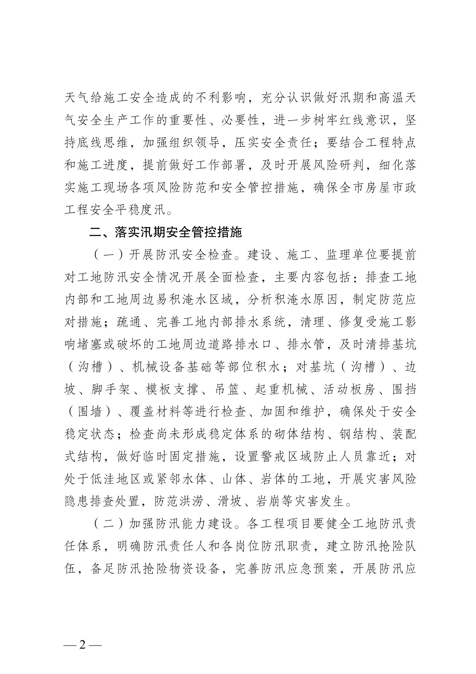 关于做好汛期和高温天气房屋市政工程安全生产工作的通知