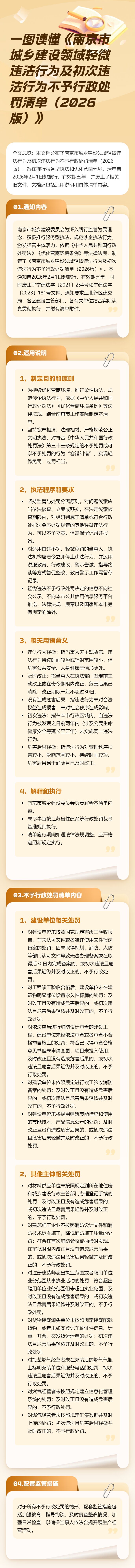 | 信息名称: | 图解《南京市城乡建设领域轻微违法行为及初次违法行为不予行政处罚清单(2026版)》 | ||
