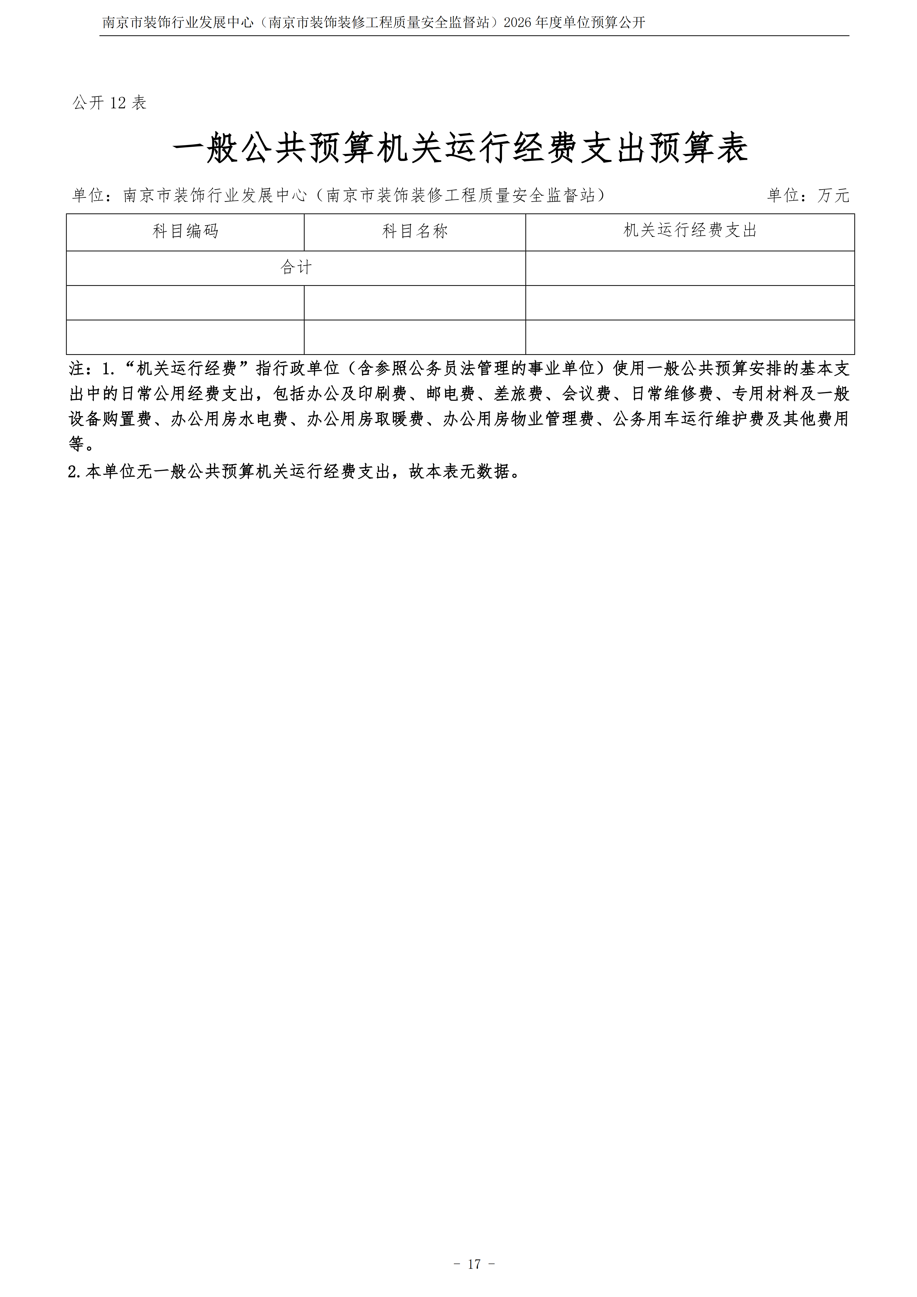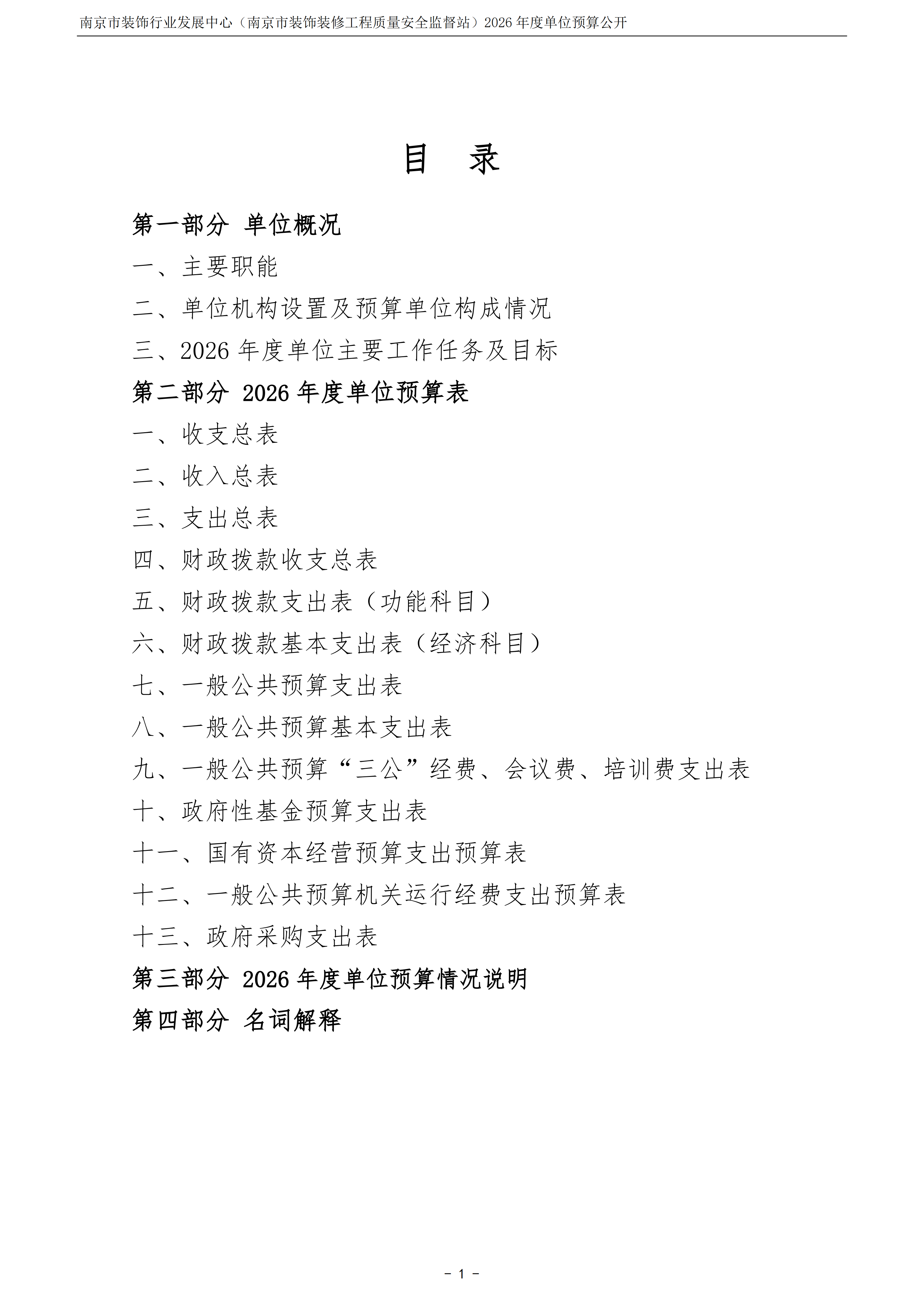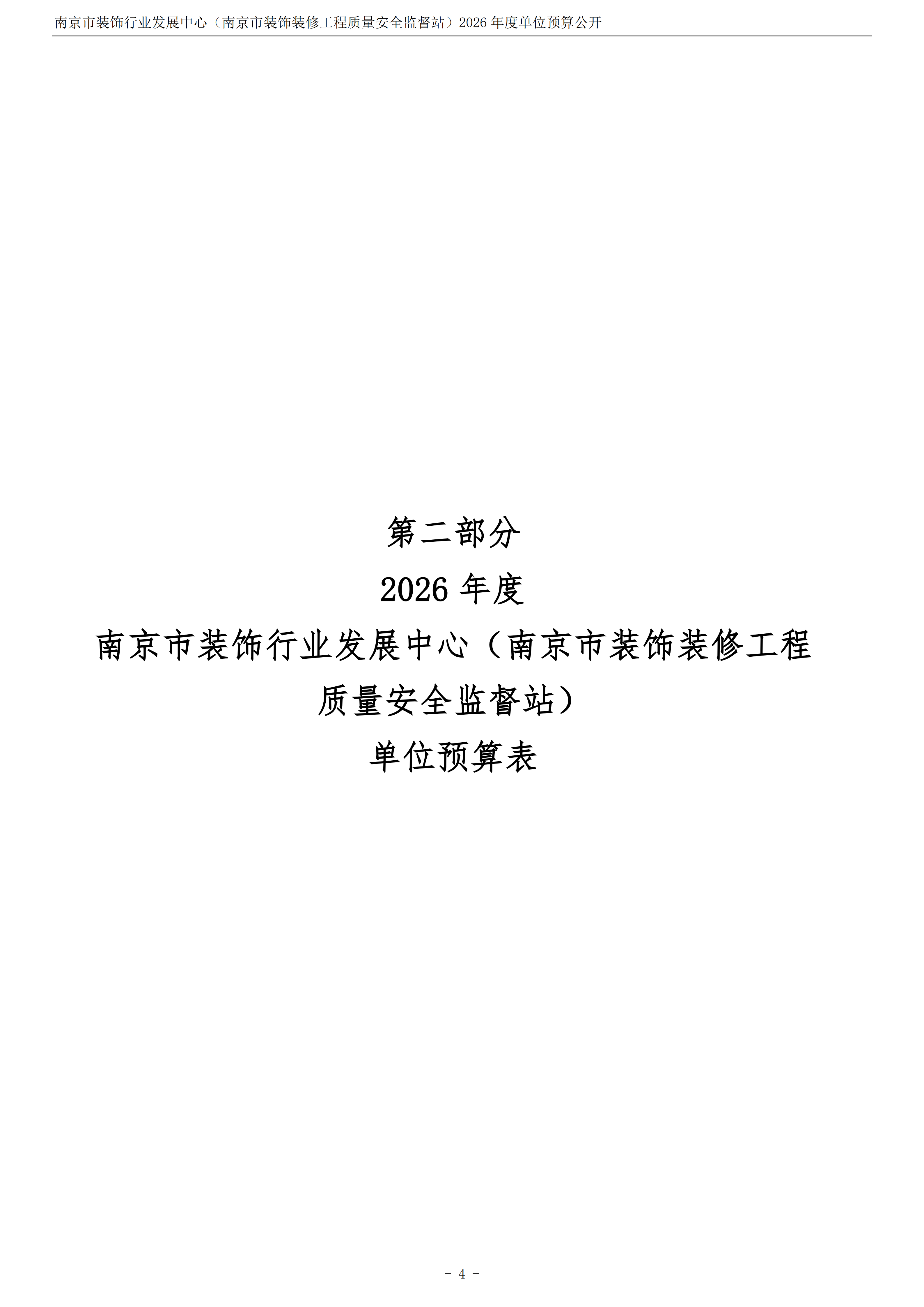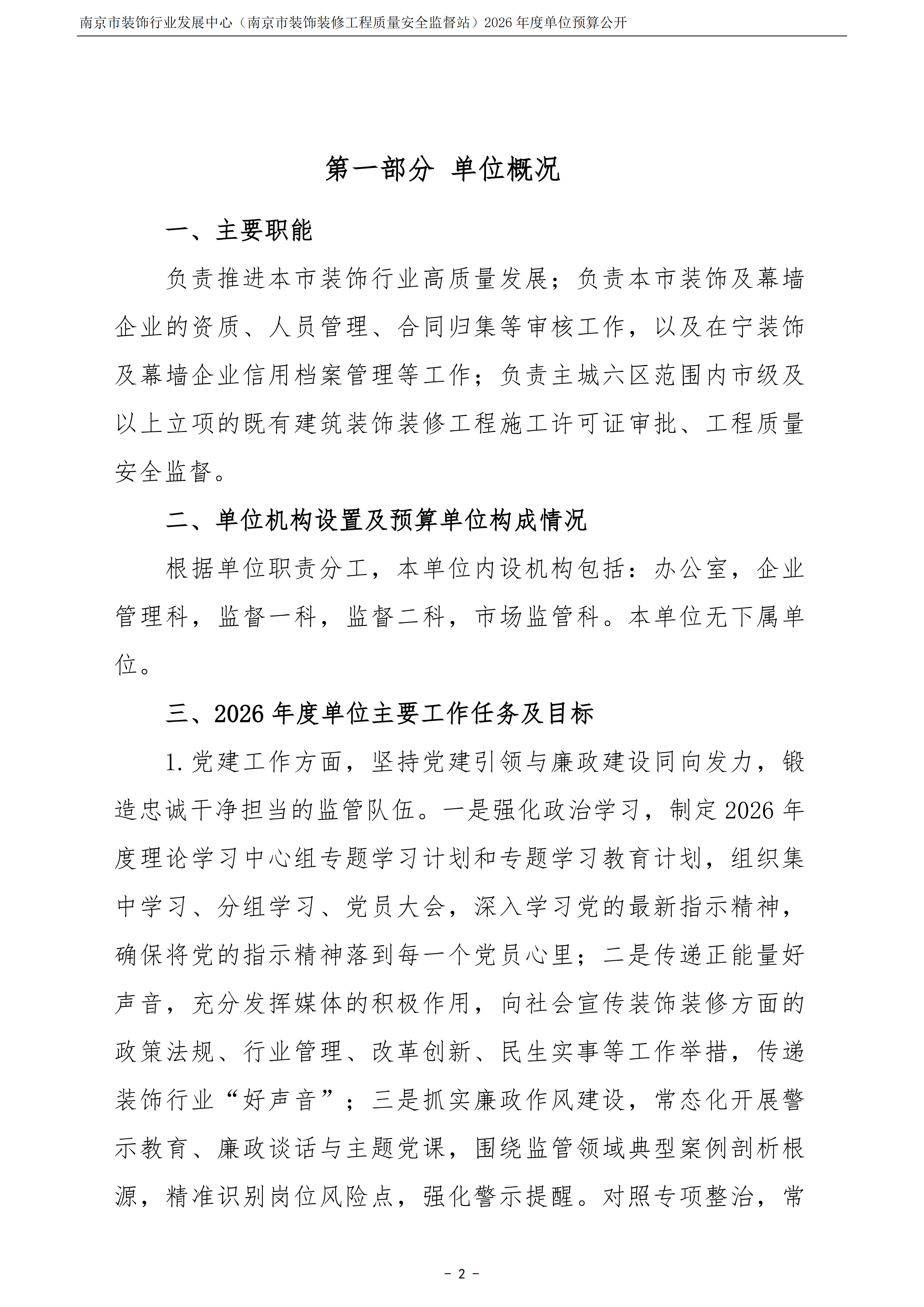 南京市装饰行业发展中心(南京市装饰装修工程质量安全监督站)2026年度单位预算公开