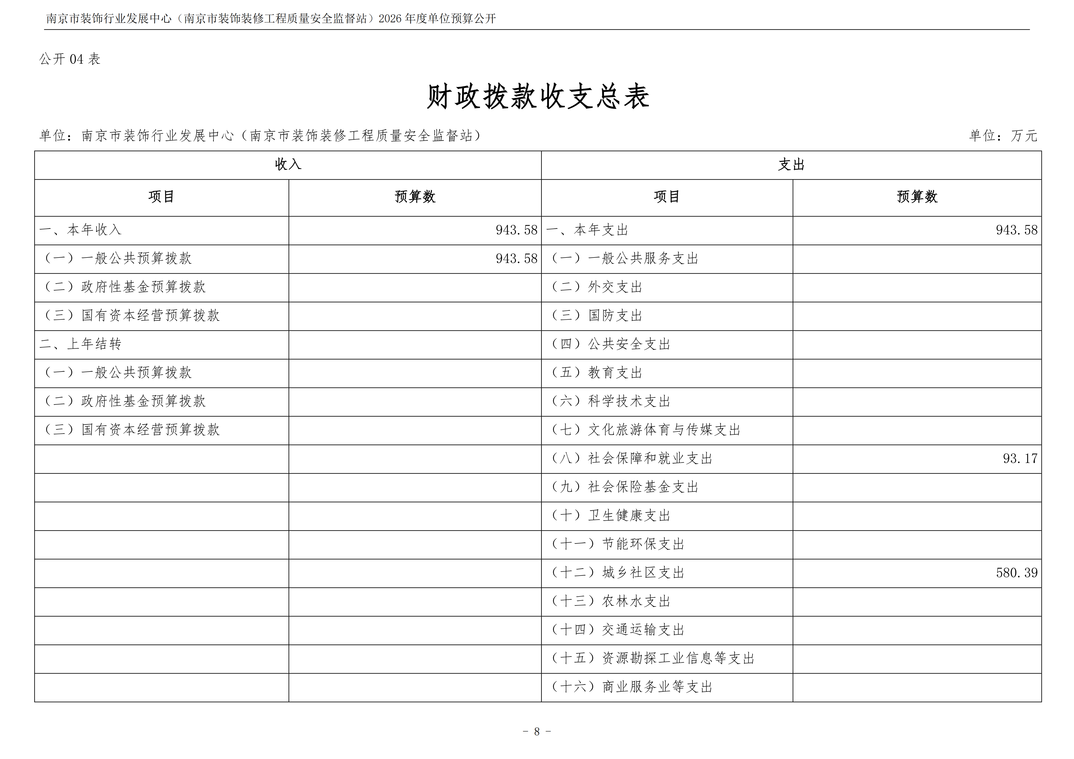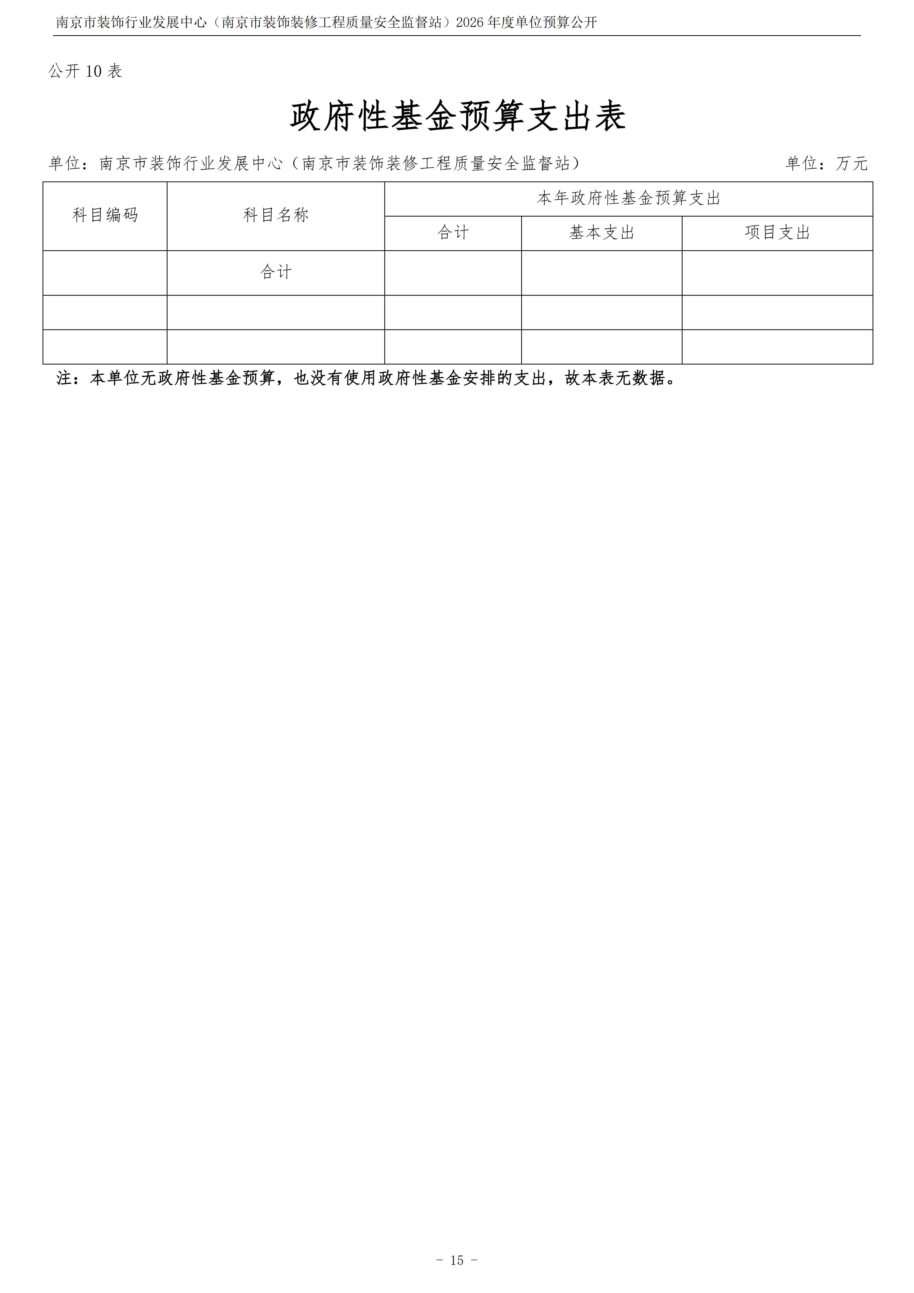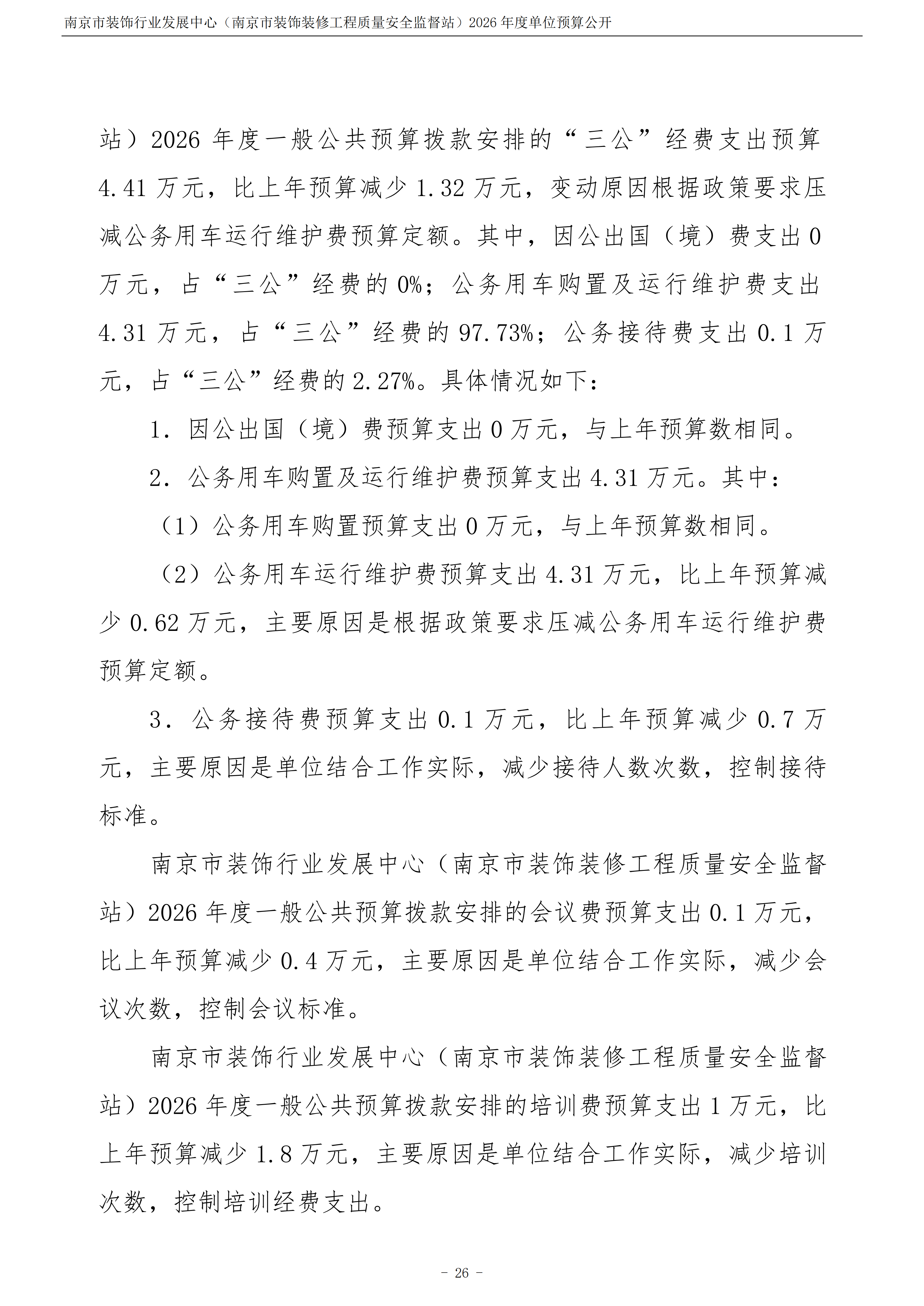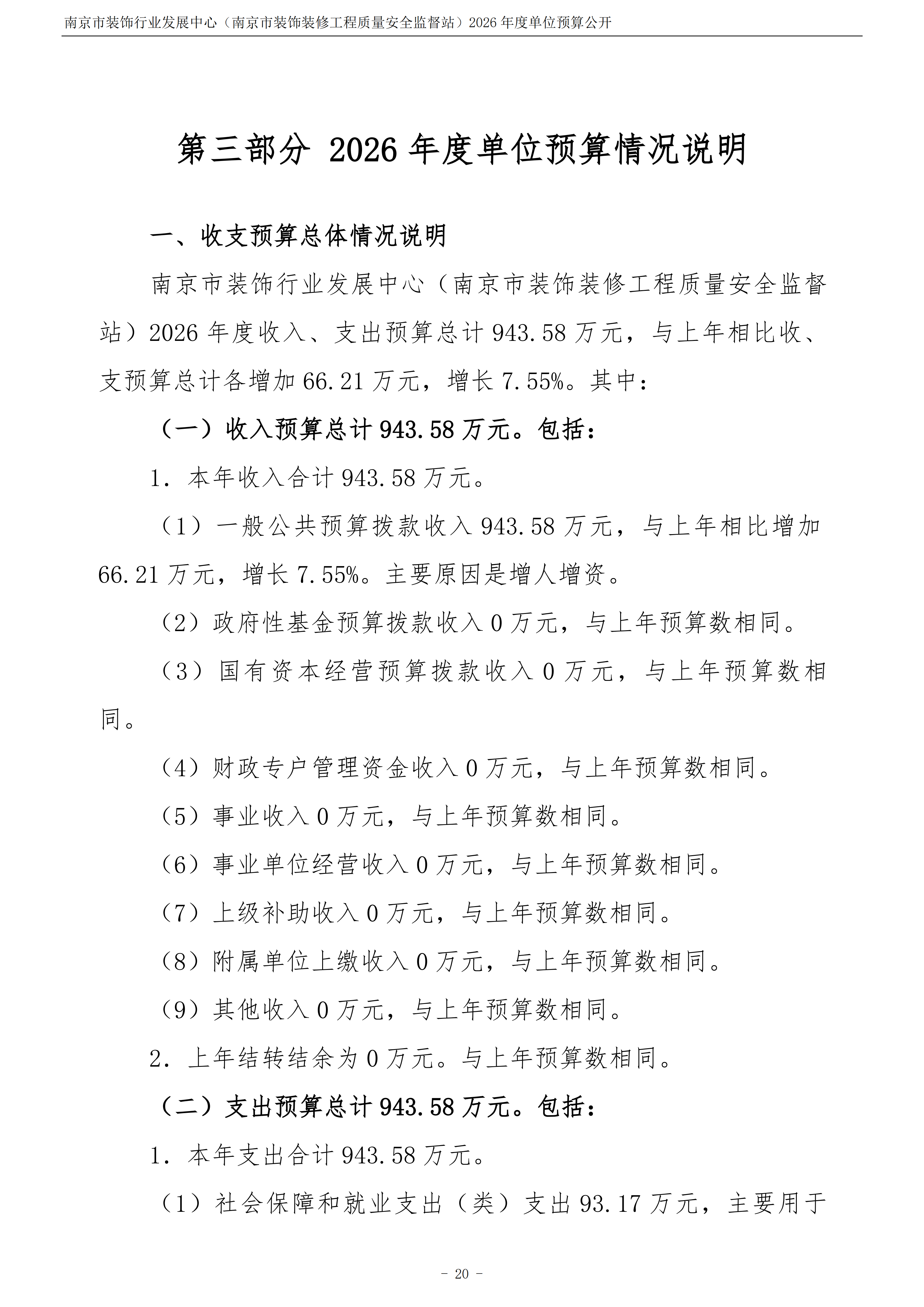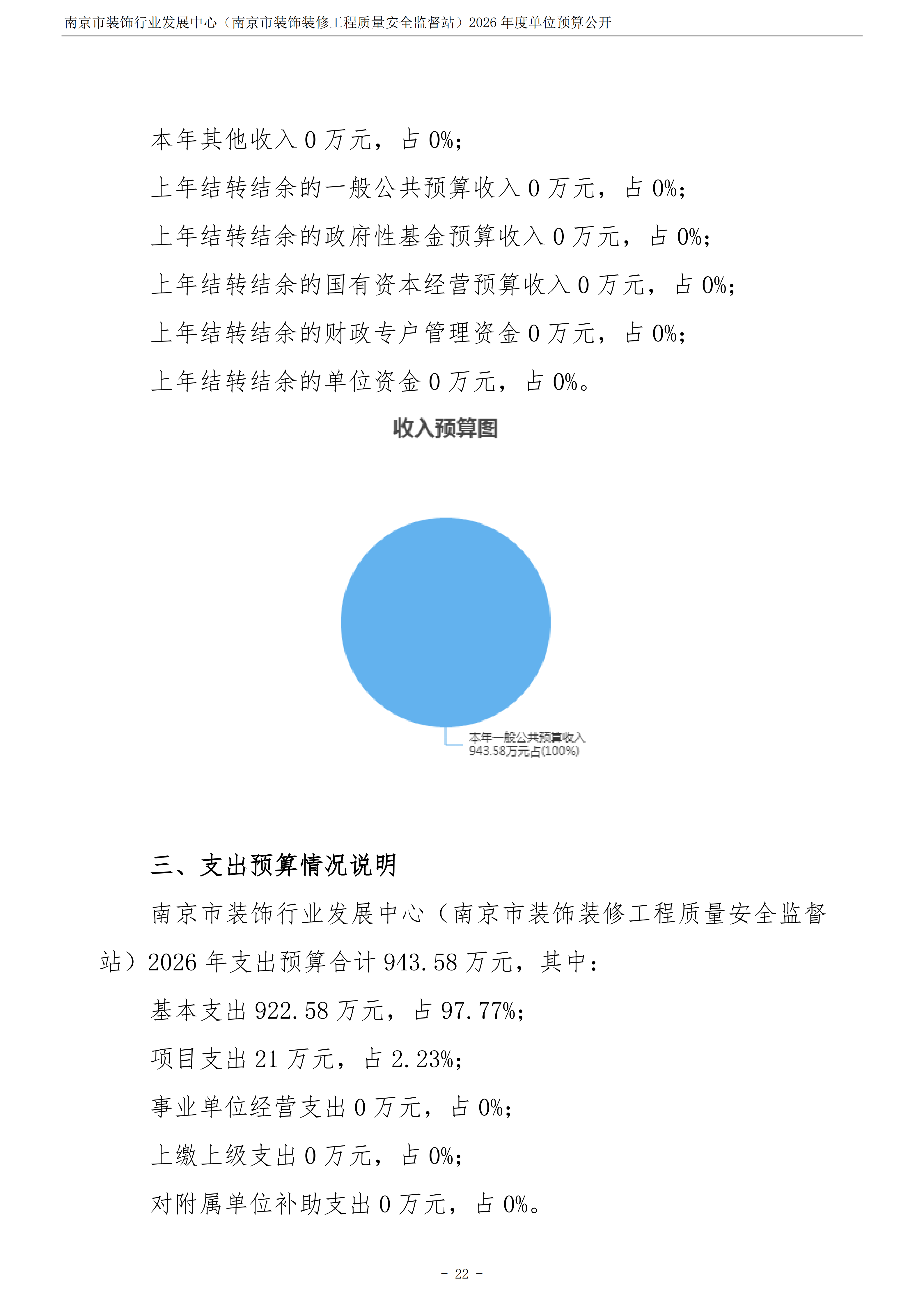 南京市装饰行业发展中心(南京市装饰装修工程质量安全监督站)2026年度单位预算公开