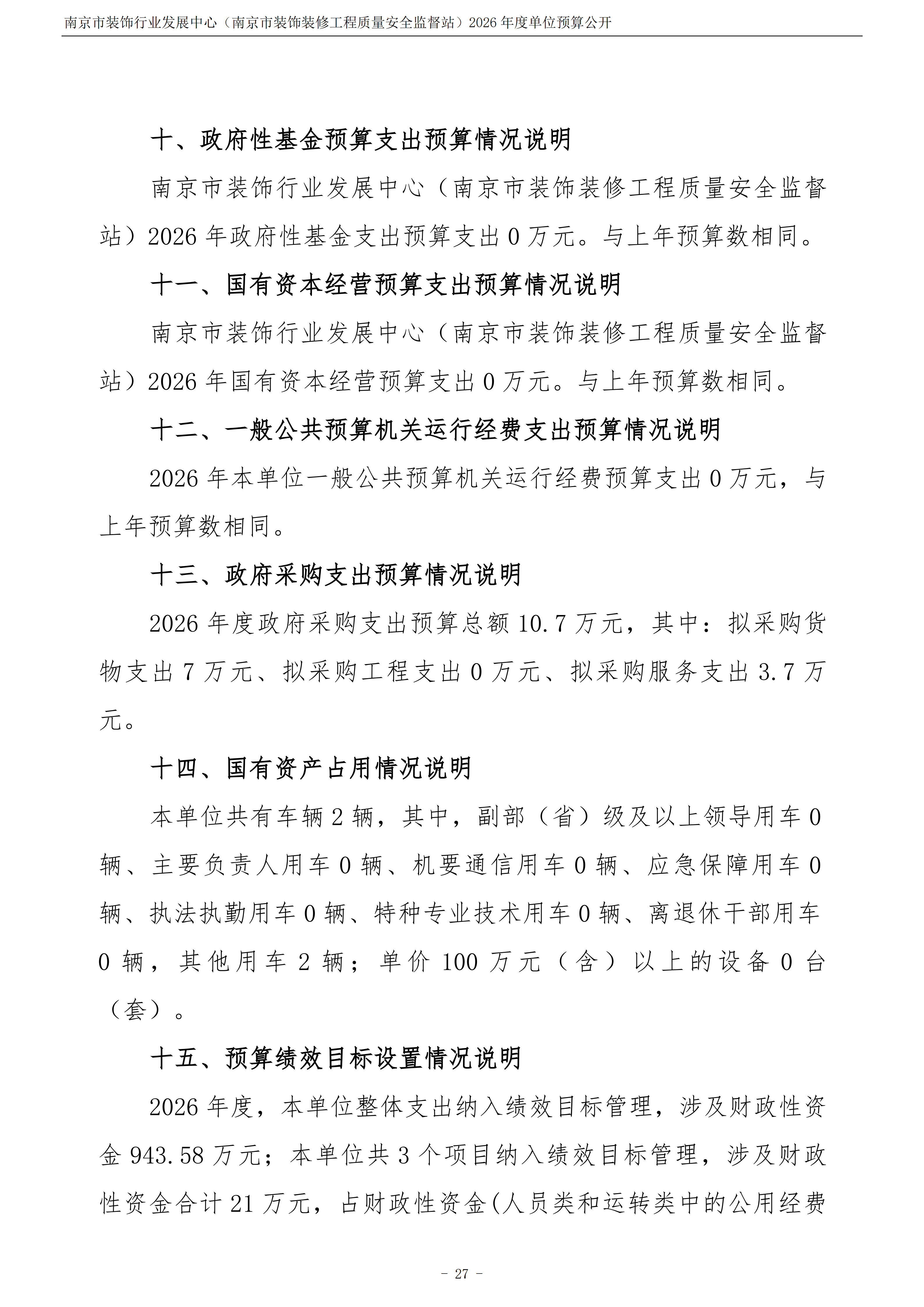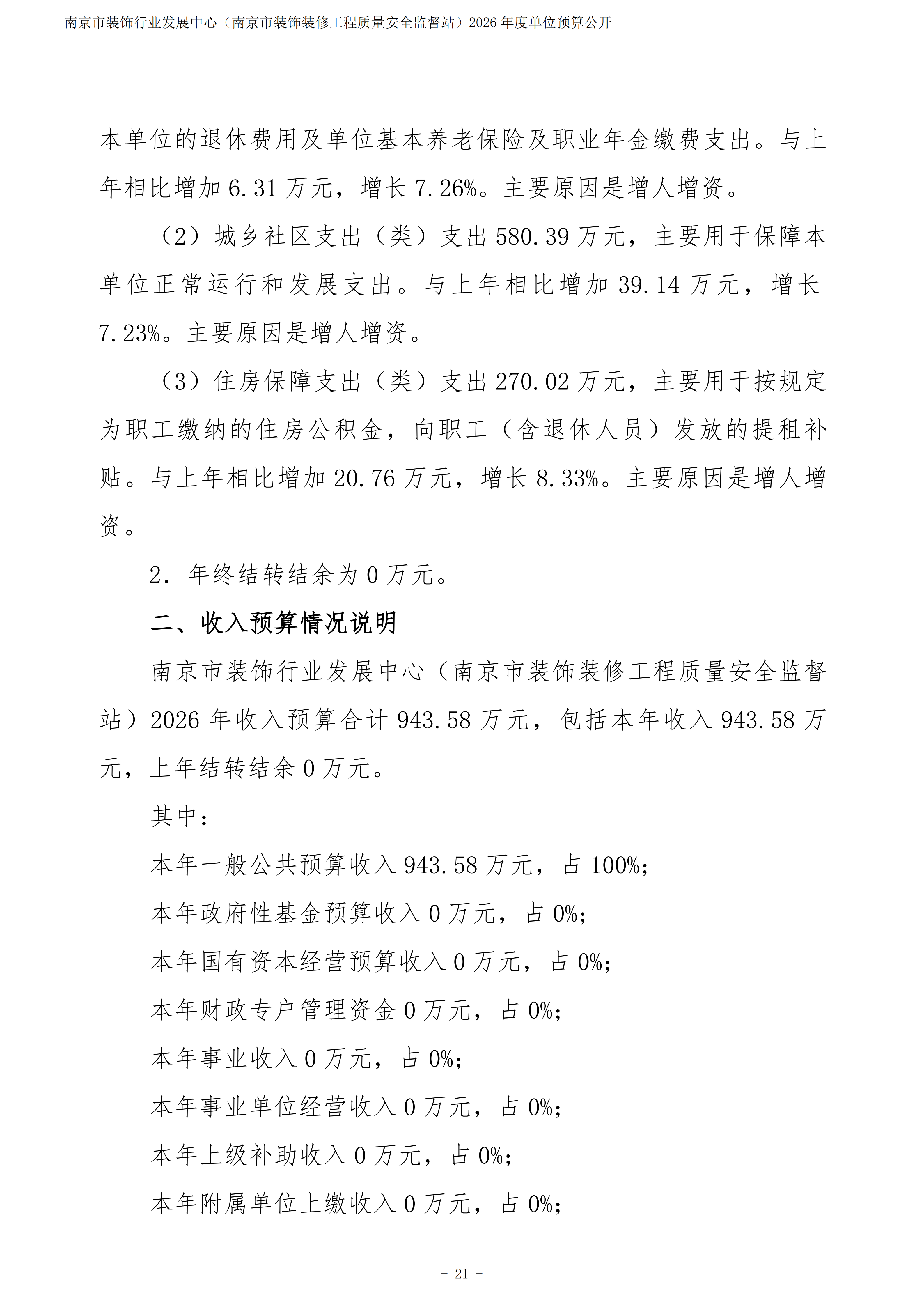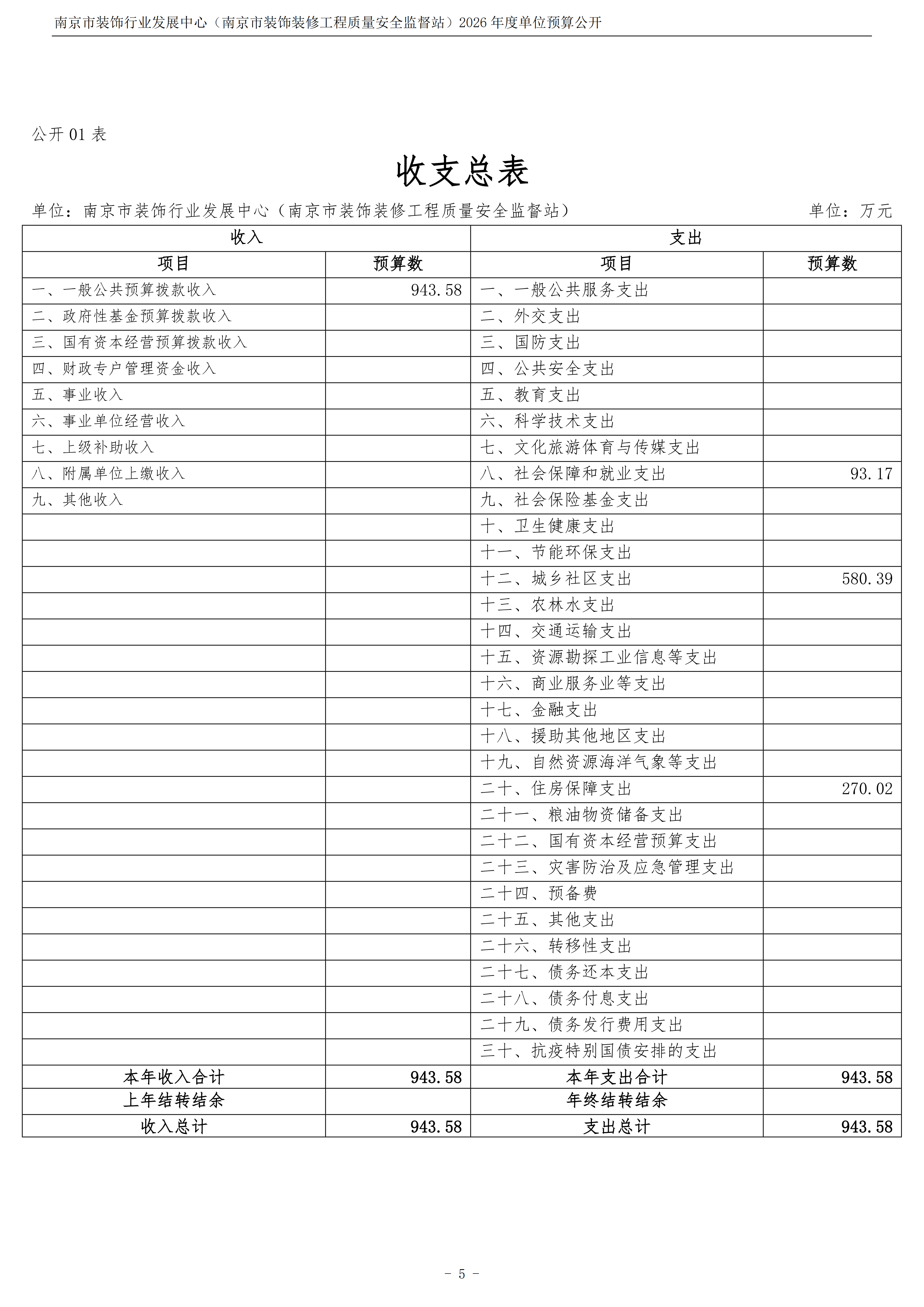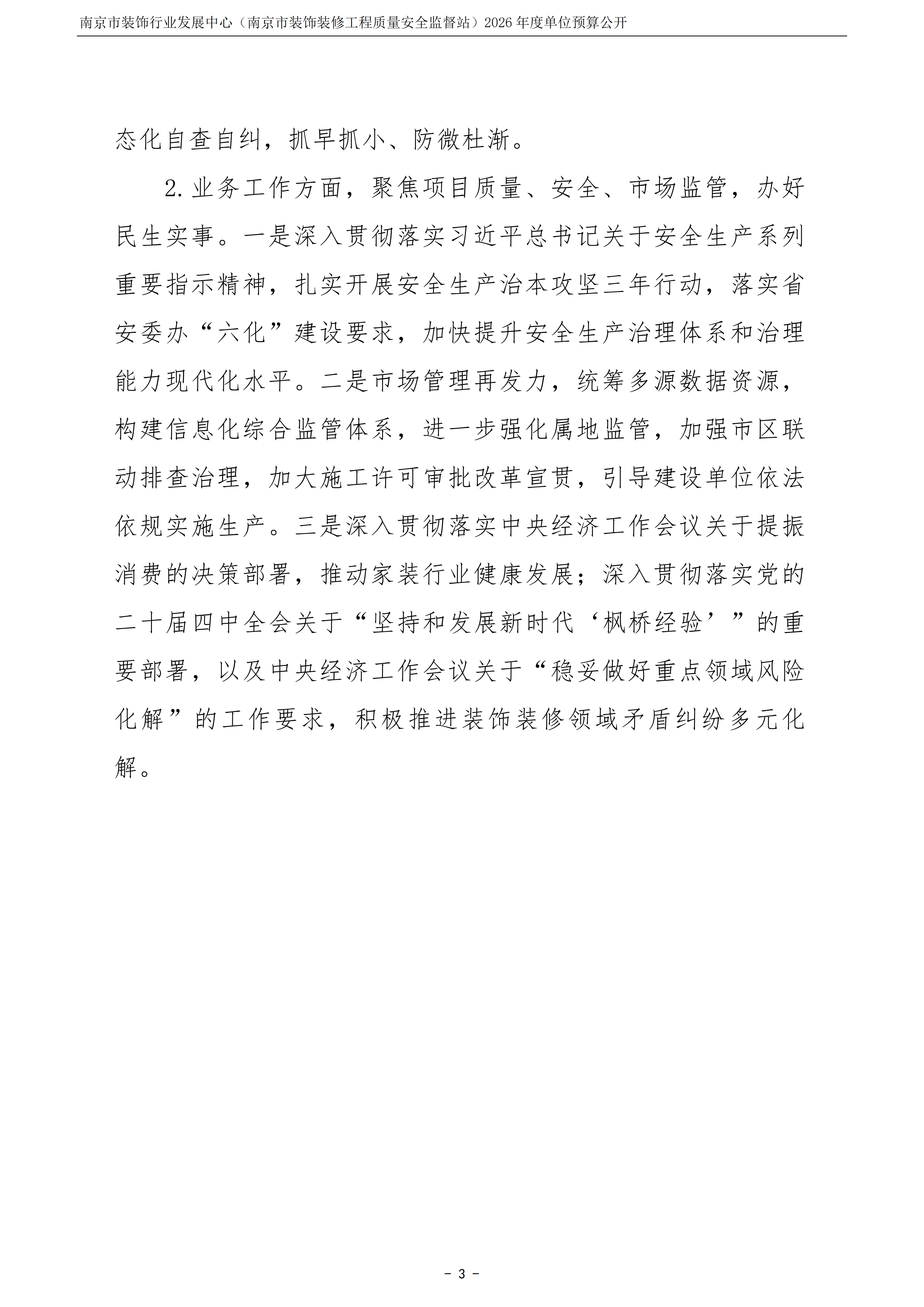 南京市装饰行业发展中心(南京市装饰装修工程质量安全监督站)2026年度单位预算公开