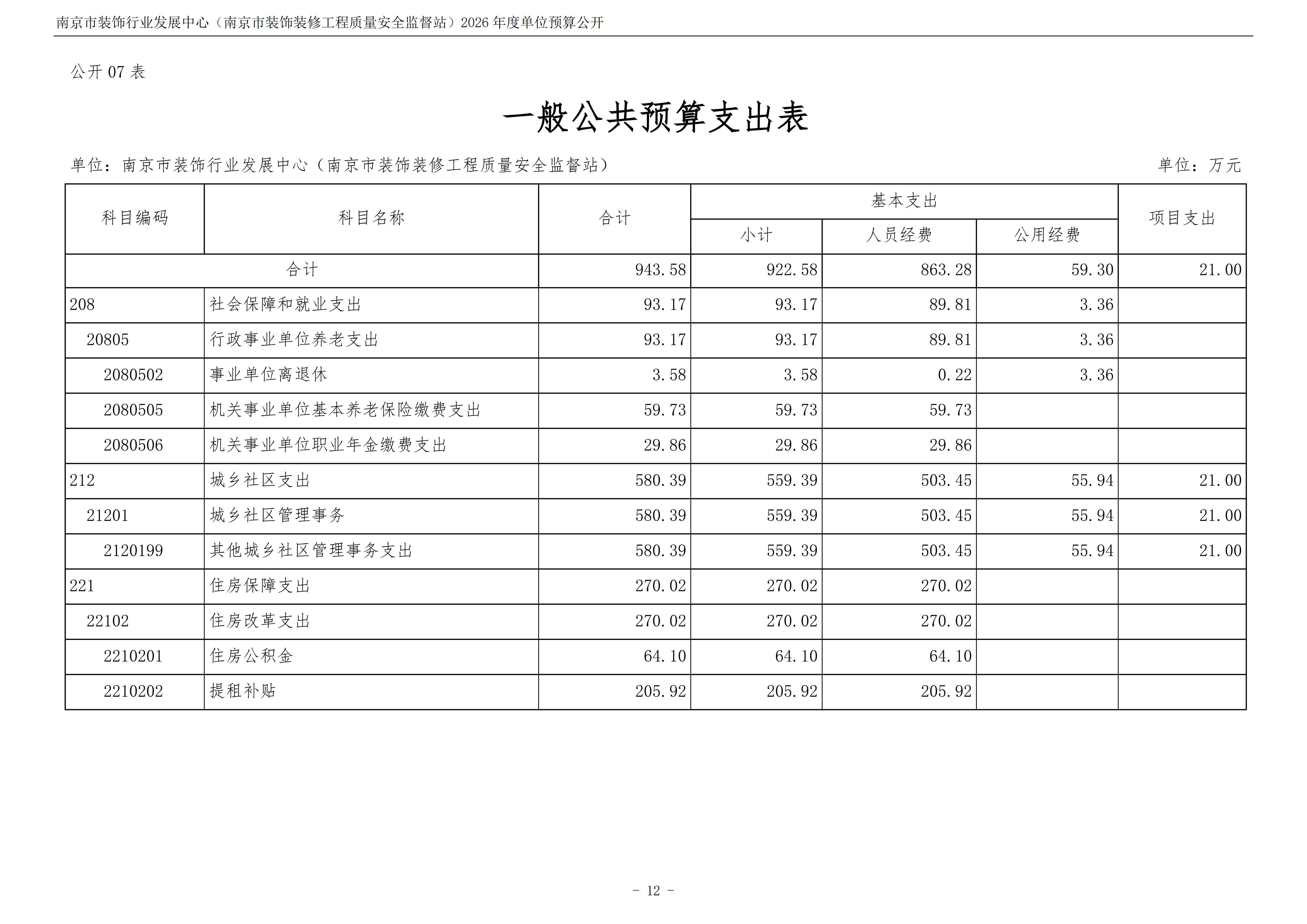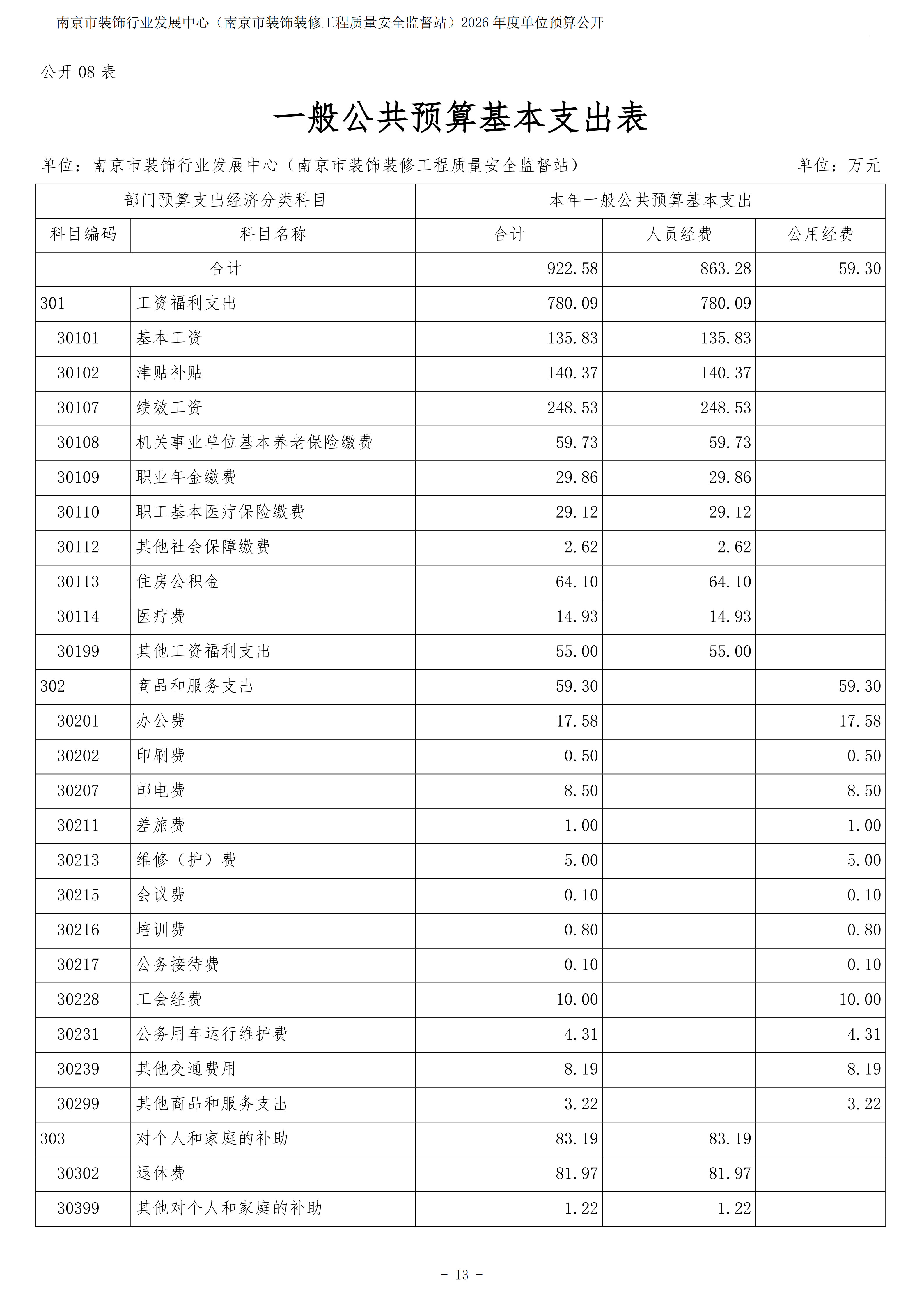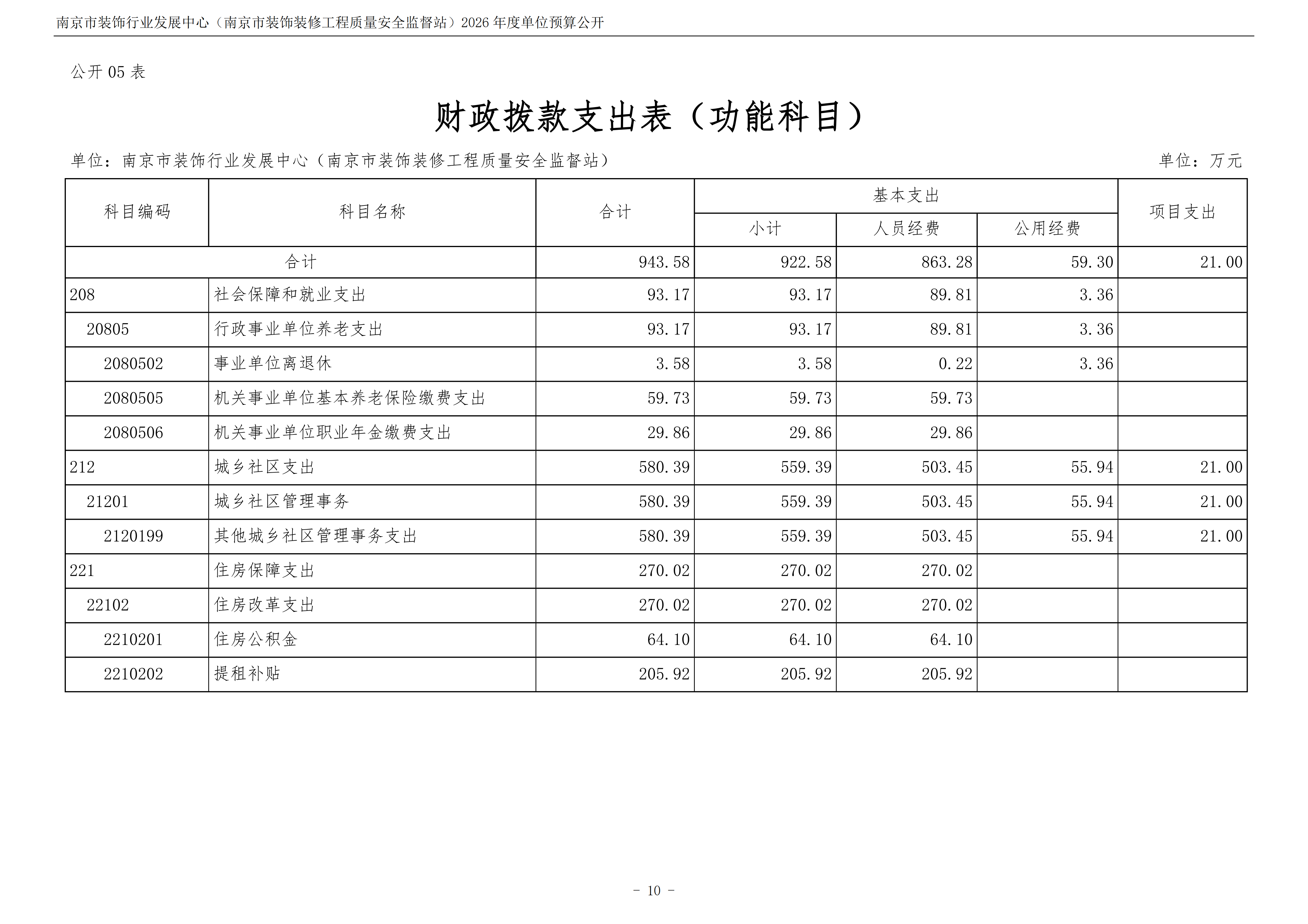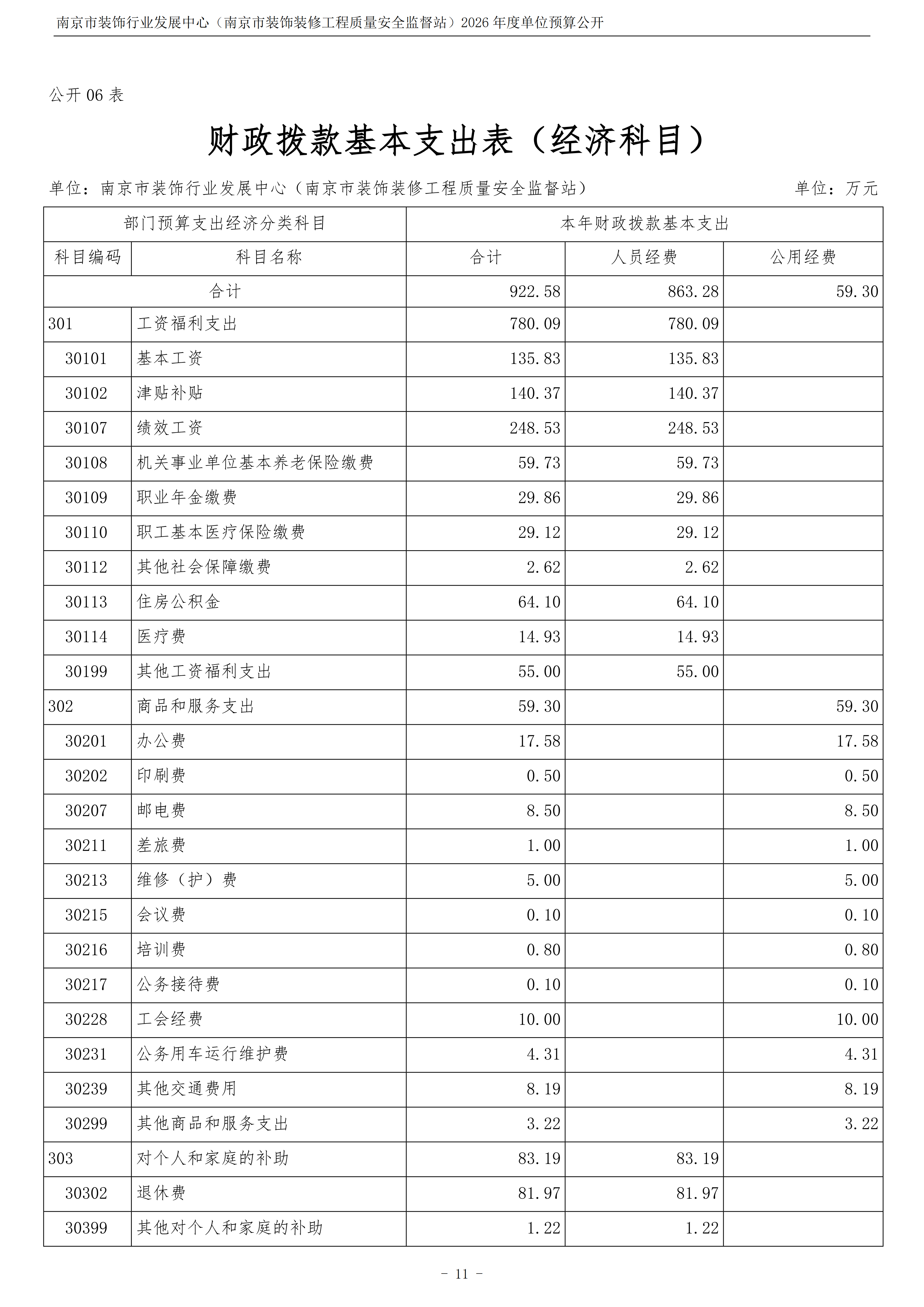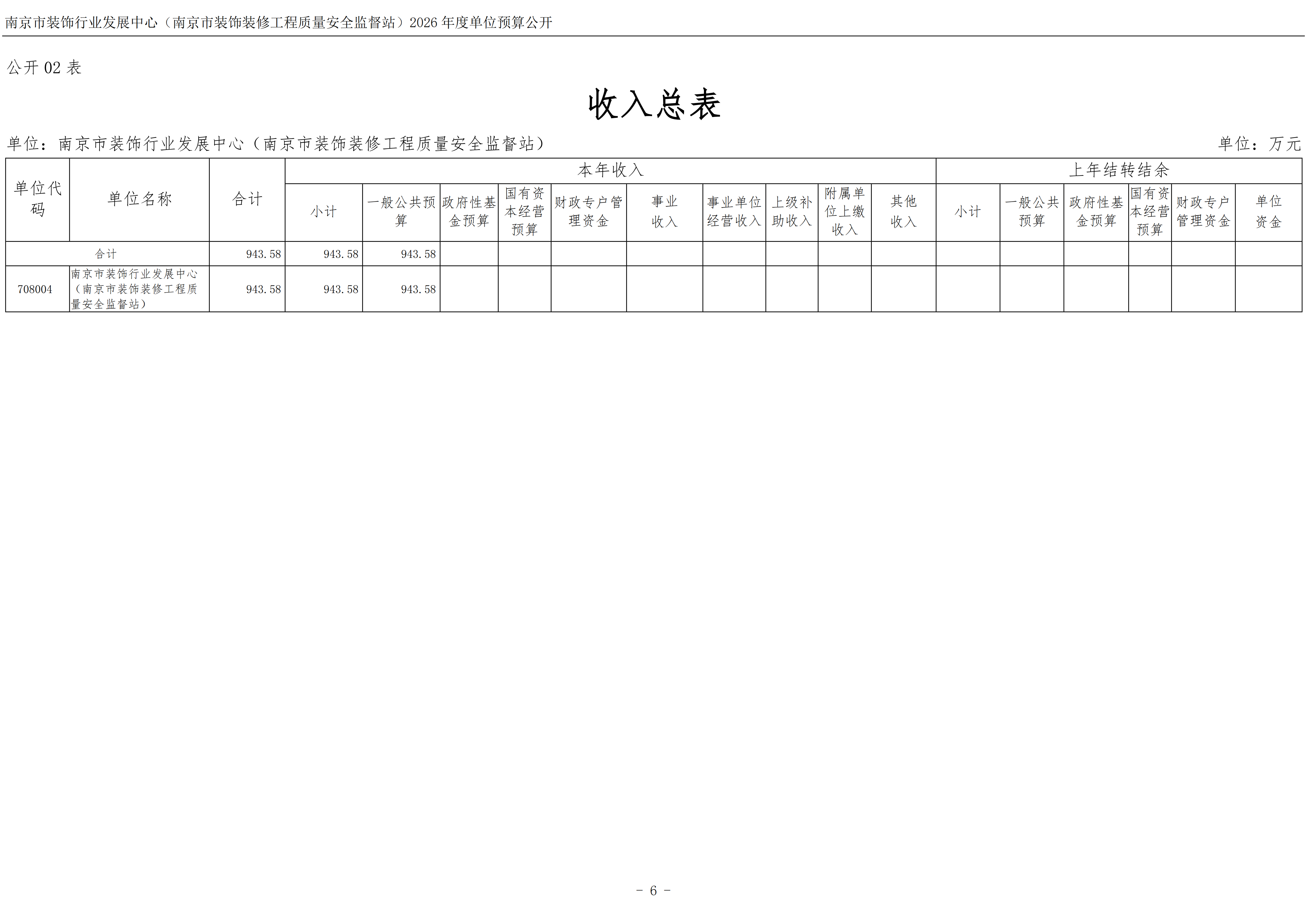 南京市装饰行业发展中心(南京市装饰装修工程质量安全监督站)2026年度单位预算公开
