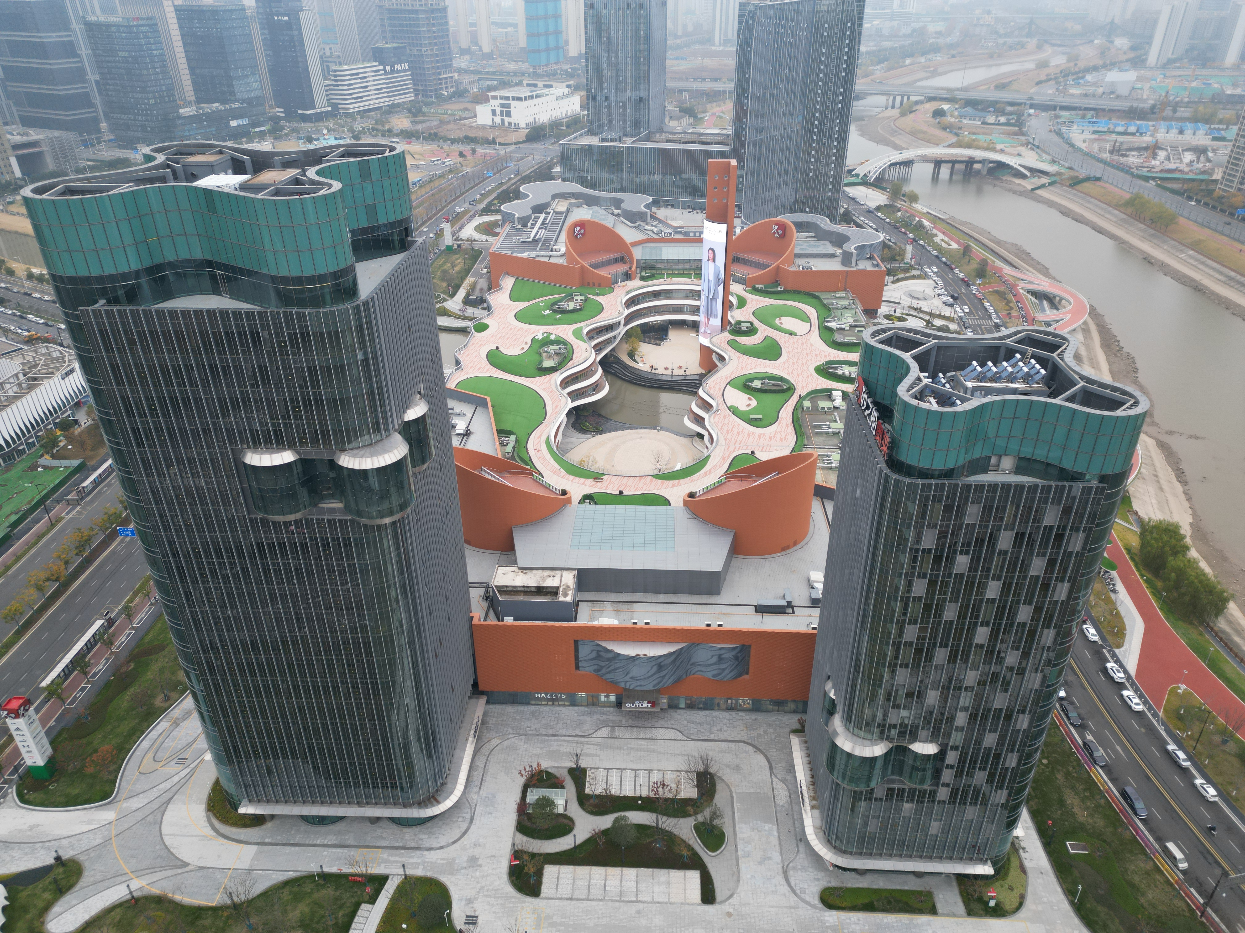 该项目由商业楼、办公楼、公寓楼组成,其中商业楼4层,最高28.8m;办公楼21层,高度99.85m;公寓楼18层,高度78.8m;本工程幕墙面积共约11.2万㎡。主要系统:单元式玻璃幕墙约20462.92㎡,框架玻璃幕墙约11650.07㎡,全玻点式玻璃幕墙约6296.872㎡,陶土板幕墙约20087.87㎡,铝板幕墙约20826.52㎡,GRC约:2548.8㎡,采光顶约2328.47㎡。