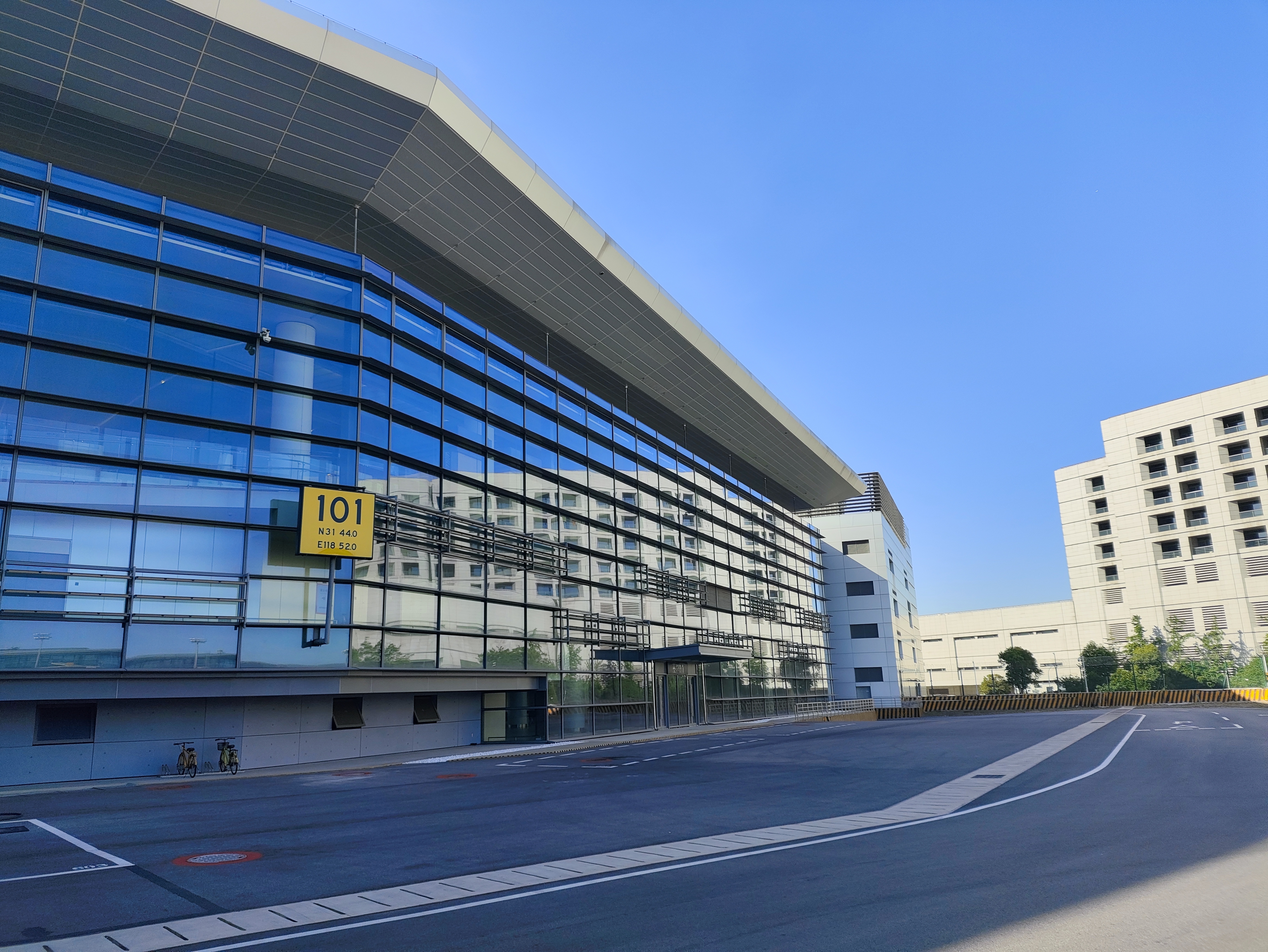 工程简介:幕墙工程所在建筑的总建筑面积50953平方米、结构型式地上钢框架结、地下混凝土框架结构、地上4层,地下1层,建筑高度24.3米、地上地下建筑耐等级为一级、多层公共建筑、地处南京禄口国际机场内。幕墙面积约37573.12平方米,造价5615.11万元。主要包括各个立面明框玻璃幕墙、阳极氧化铝板幕墙、铝板收口、铝合金线条、铝合金开启扇、玻璃地弹门和电动遮阳百叶。