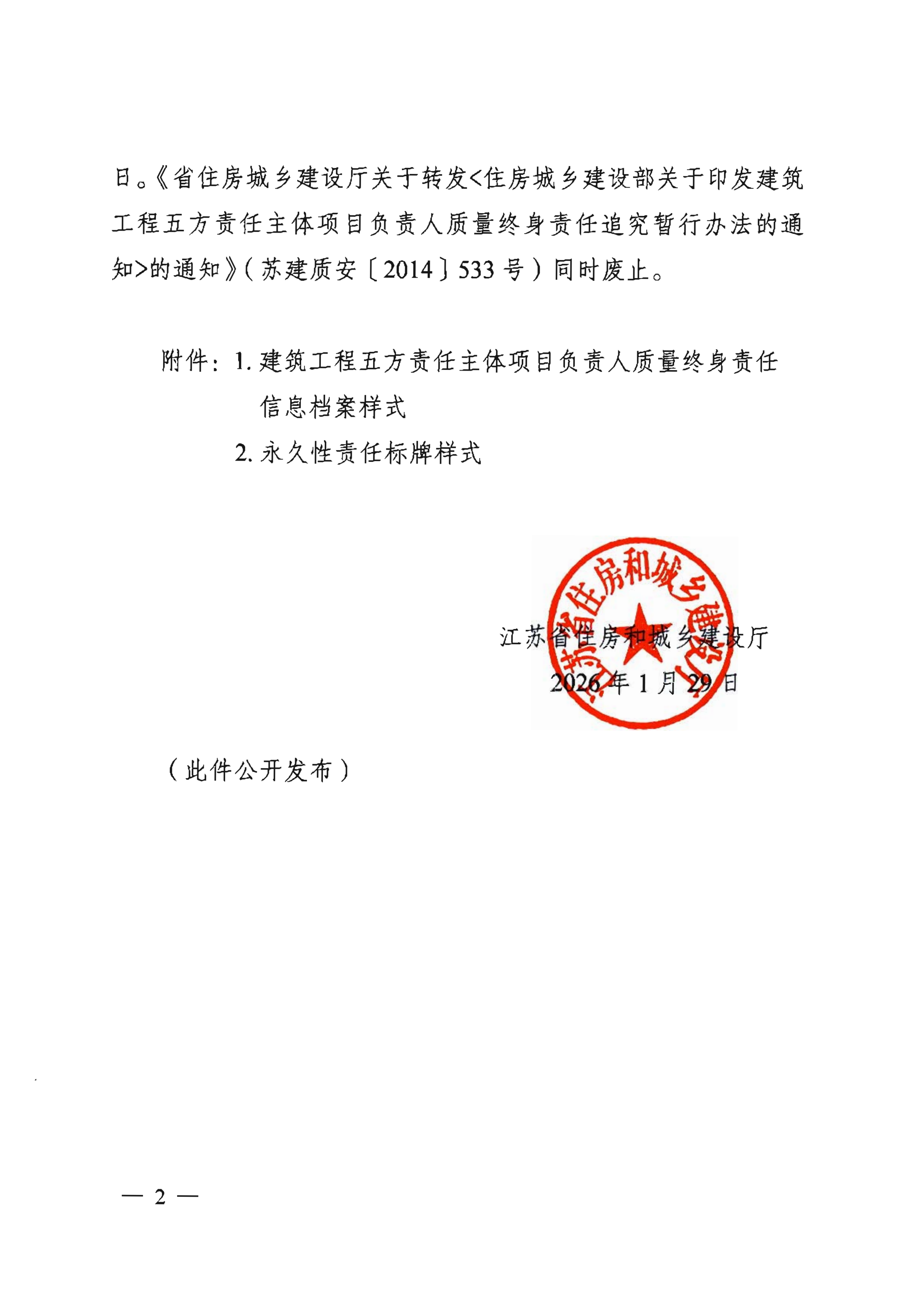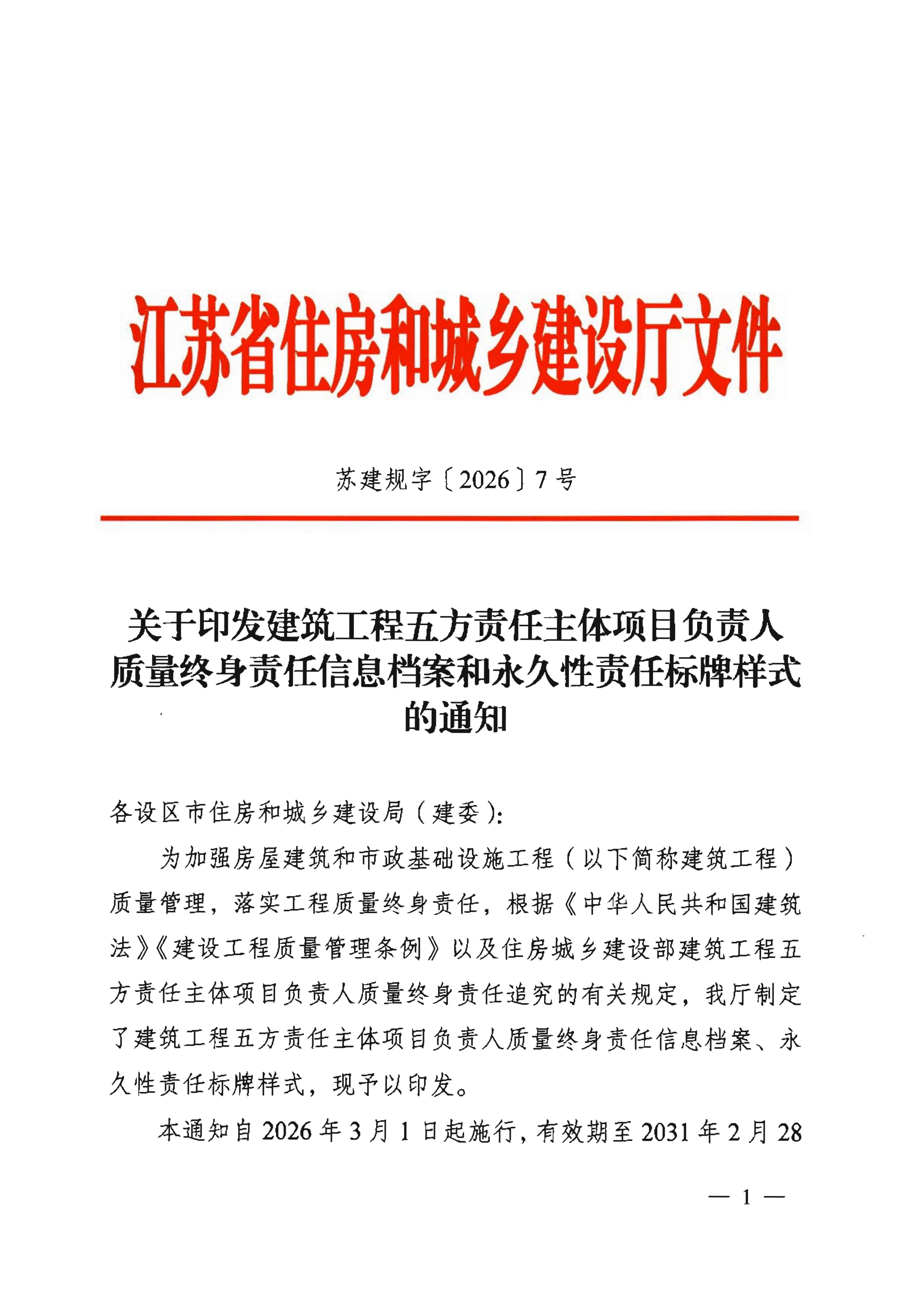 关于印发建筑工程五方责任主体项目负责人质量终身责任信息档案和永久性责任标牌样式的通知
