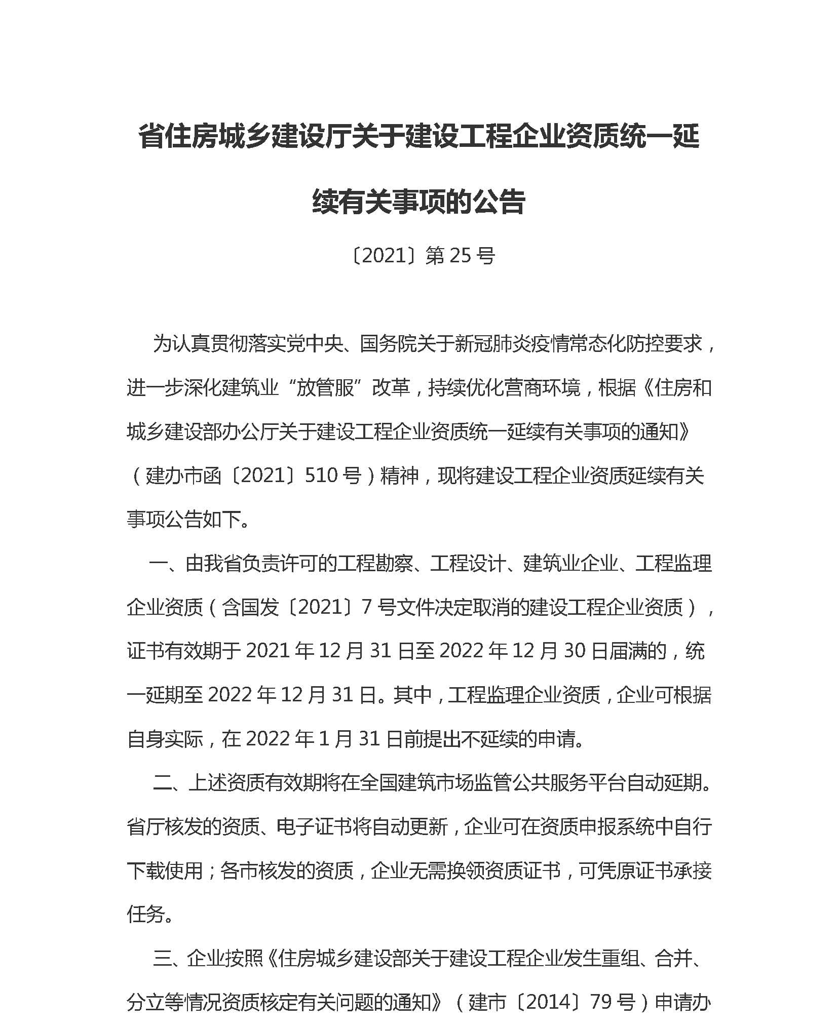 转发省住房城乡建设厅关于建设工程企业资质统一延续有关事项的公告