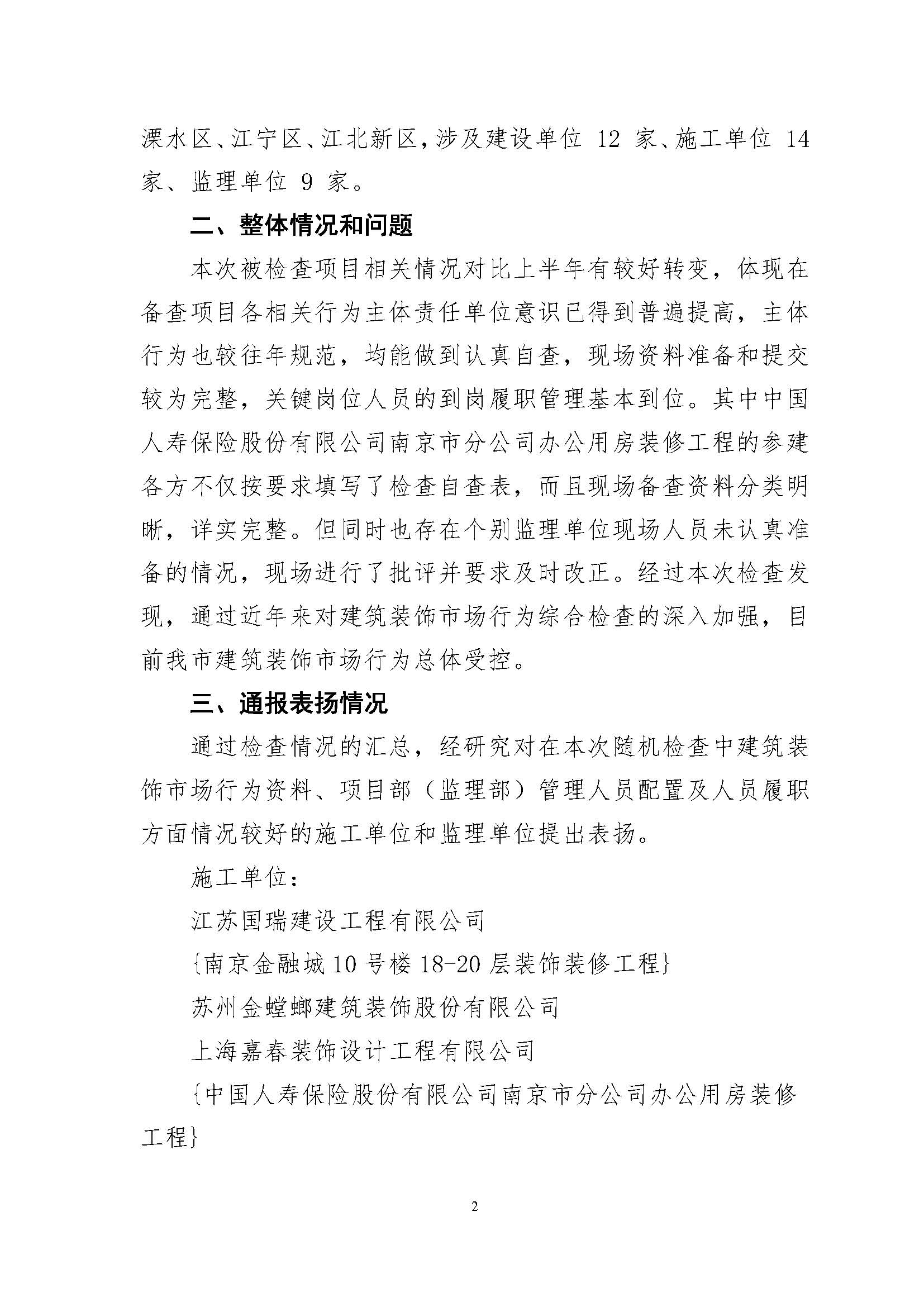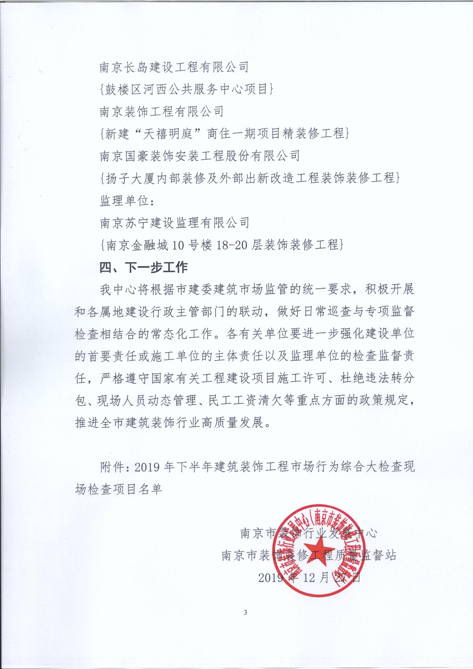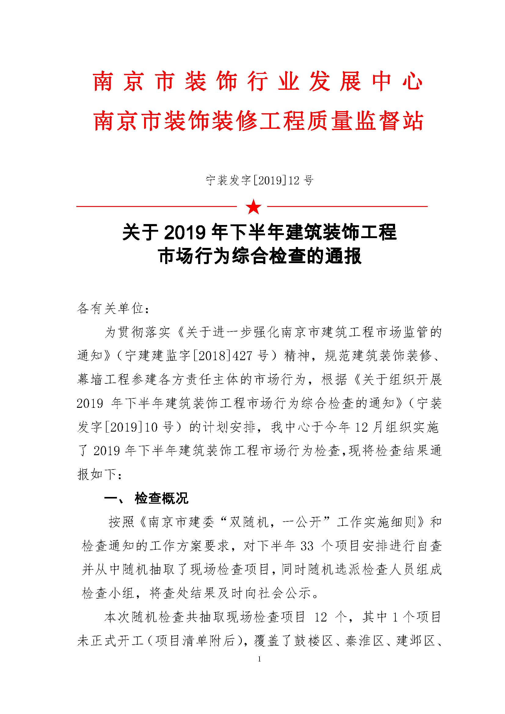 关于2019年下半年建筑装饰工程 市场行为综合检查的通报