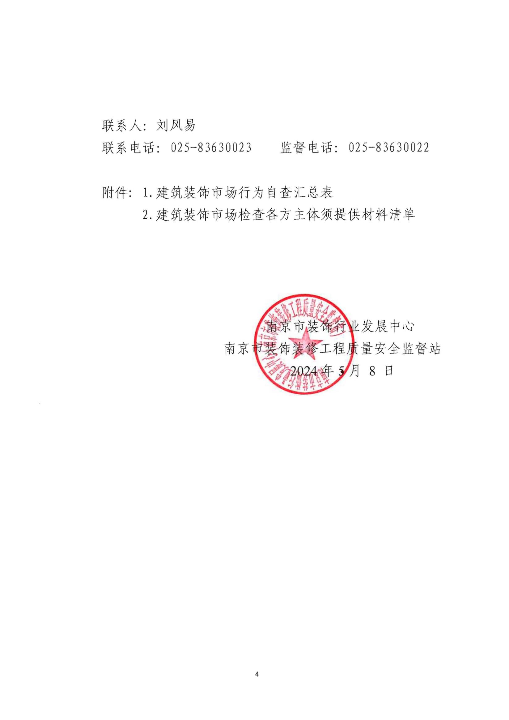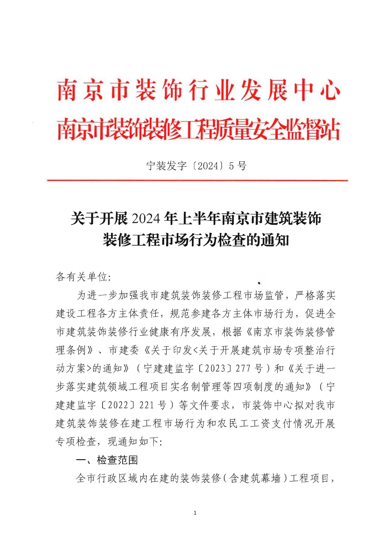 关于开展2024年上半年南京市建筑装饰装修工程市场行为检查的通知
