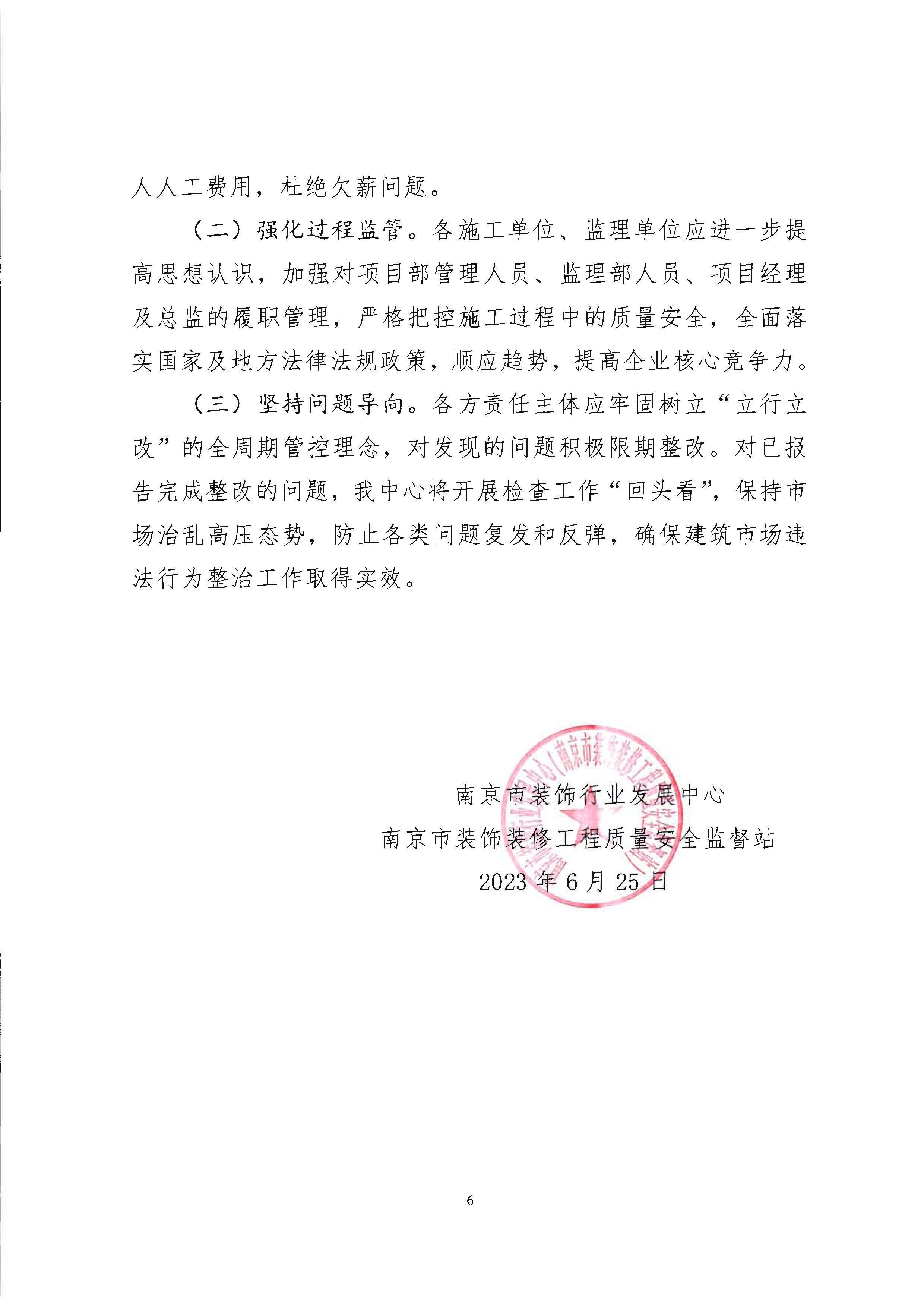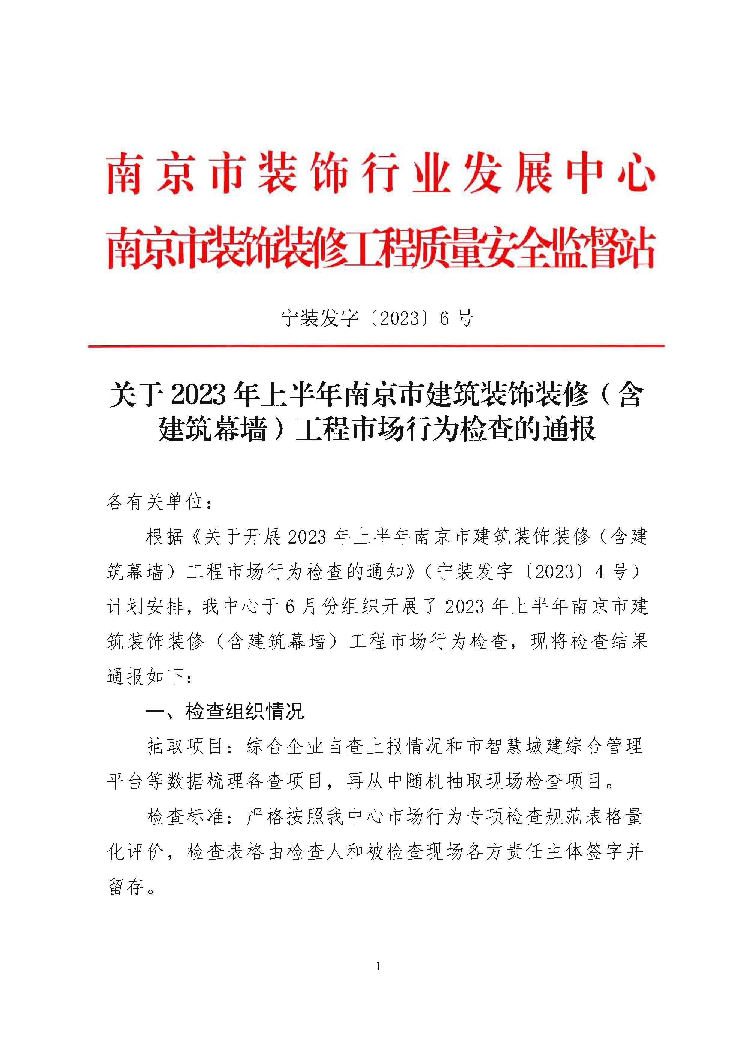 关于2023年上半年南京市建筑装饰装修(含建筑幕墙)工程市场行为检查的通报