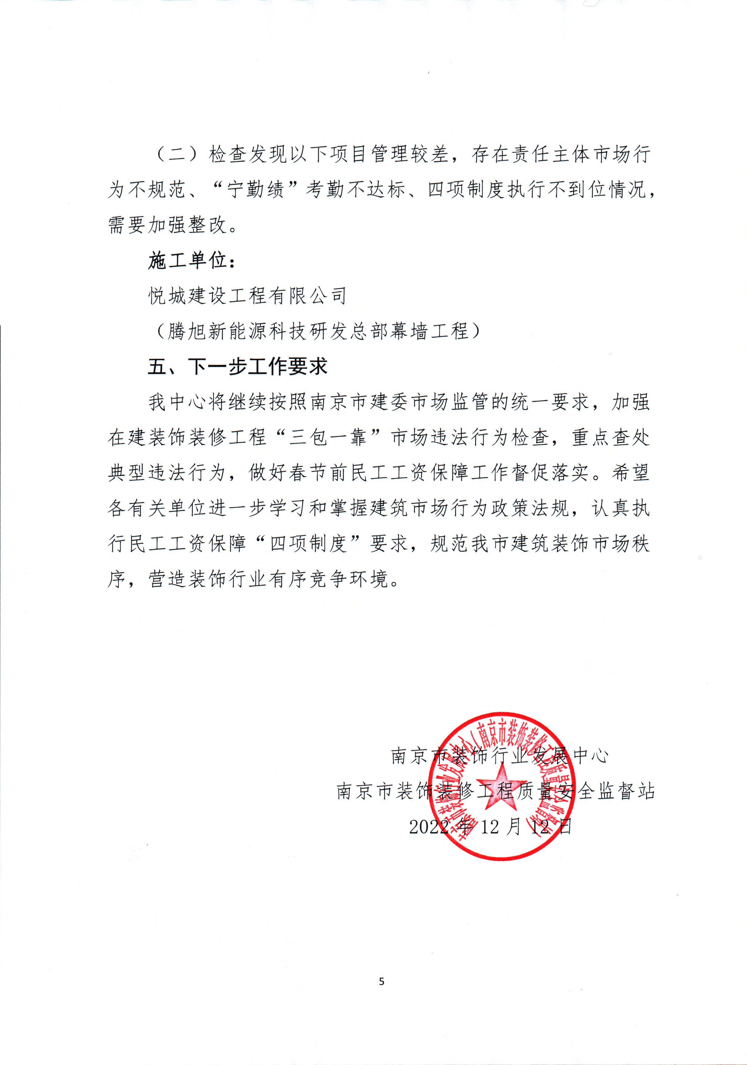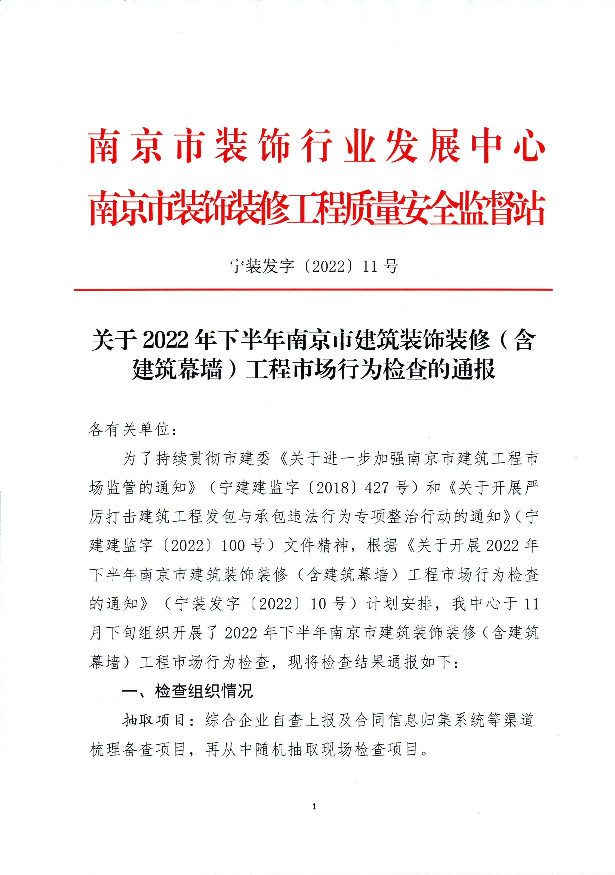 关于 2022年下半年南京市建筑装饰装修(含建筑幕墙)工程市场行为检查的通报